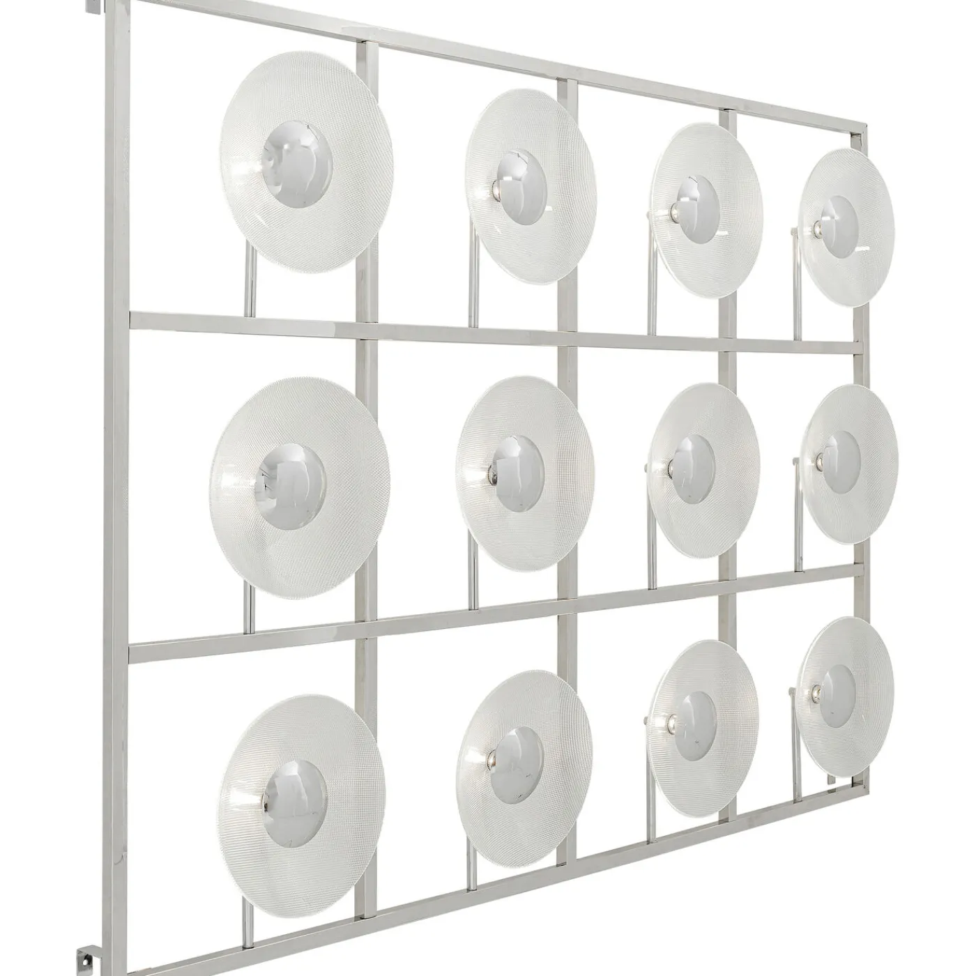 - Large Luminous Object For Mounting On The Wall With A Glossy Chrome-Plated Stainless Steel Frame And 12 Lampshades