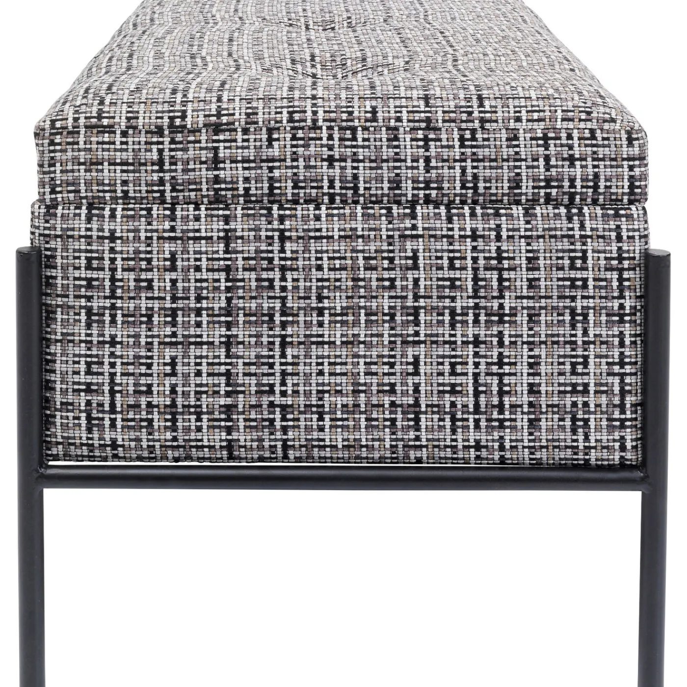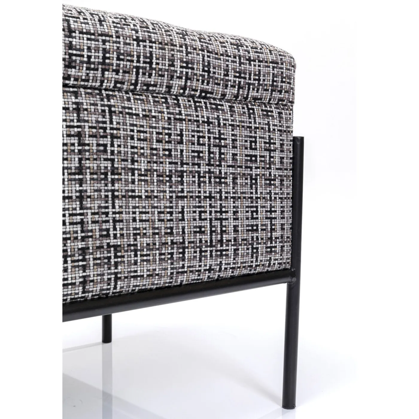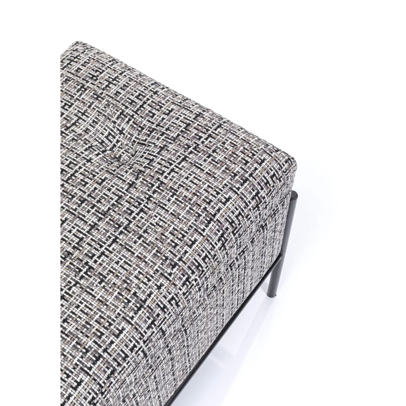 - Un Banc Design Et Elegant Avec Un Revetement En Tissu Texture Noir,Blanc Et Gris Et Une Structure Filigrane En Acier