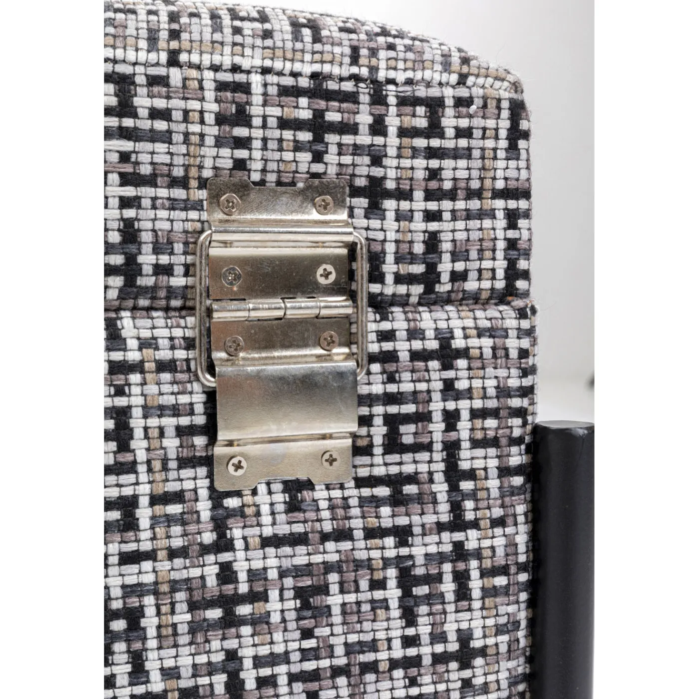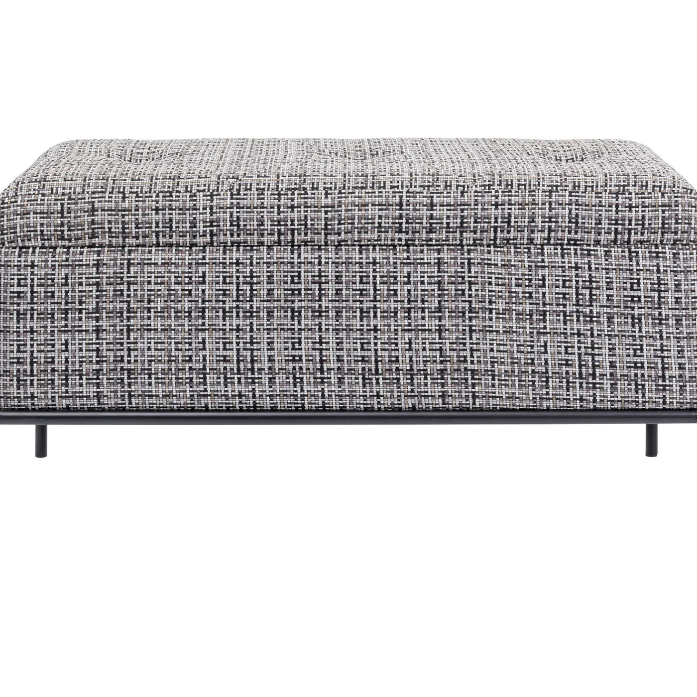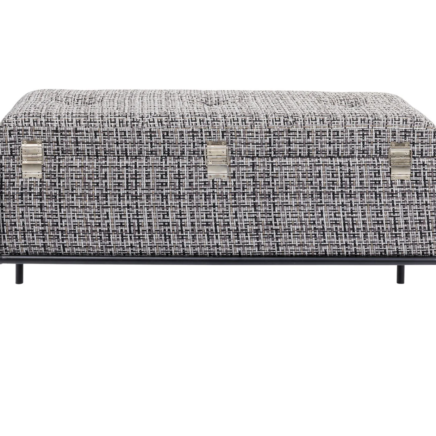 - Un Banc Design Et Elegant Avec Un Revetement En Tissu Texture Noir,Blanc Et Gris Et Une Structure Filigrane En Acier