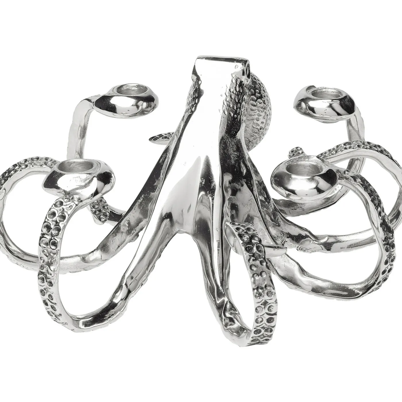 - A Shimmering Silvery Candelabra In The Shape Of An Octopus With Holders For Four Candles