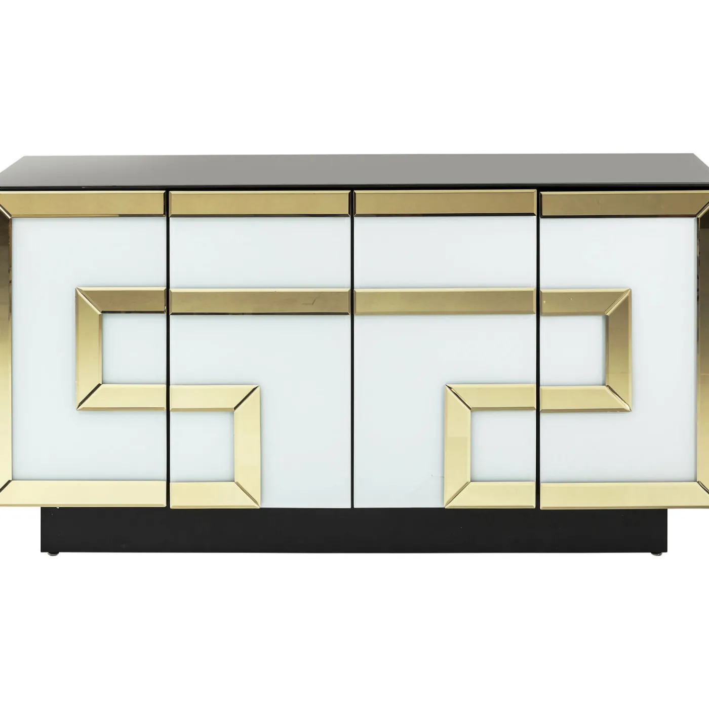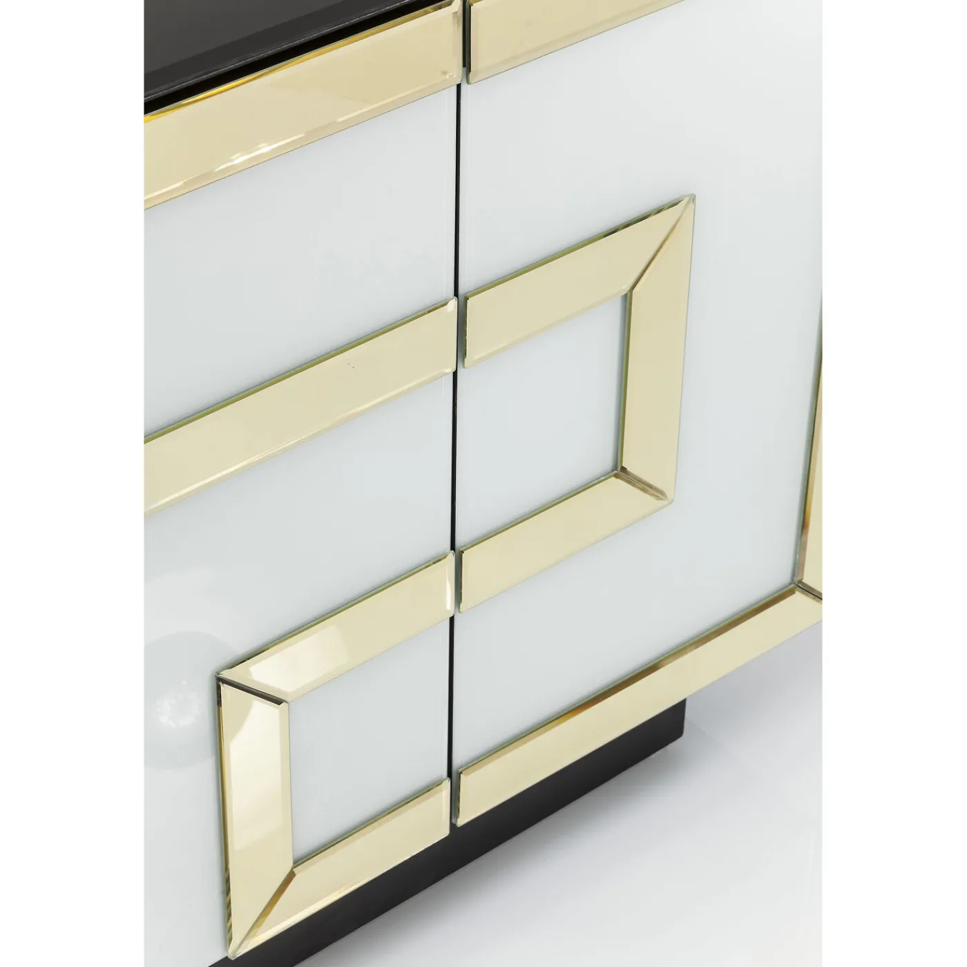 - Glossy Styling: The Fronts And Surfaces Are Clad In White,Black And Gold Tinted Glass,Giving The Sideboard An Airy,Light Appearance