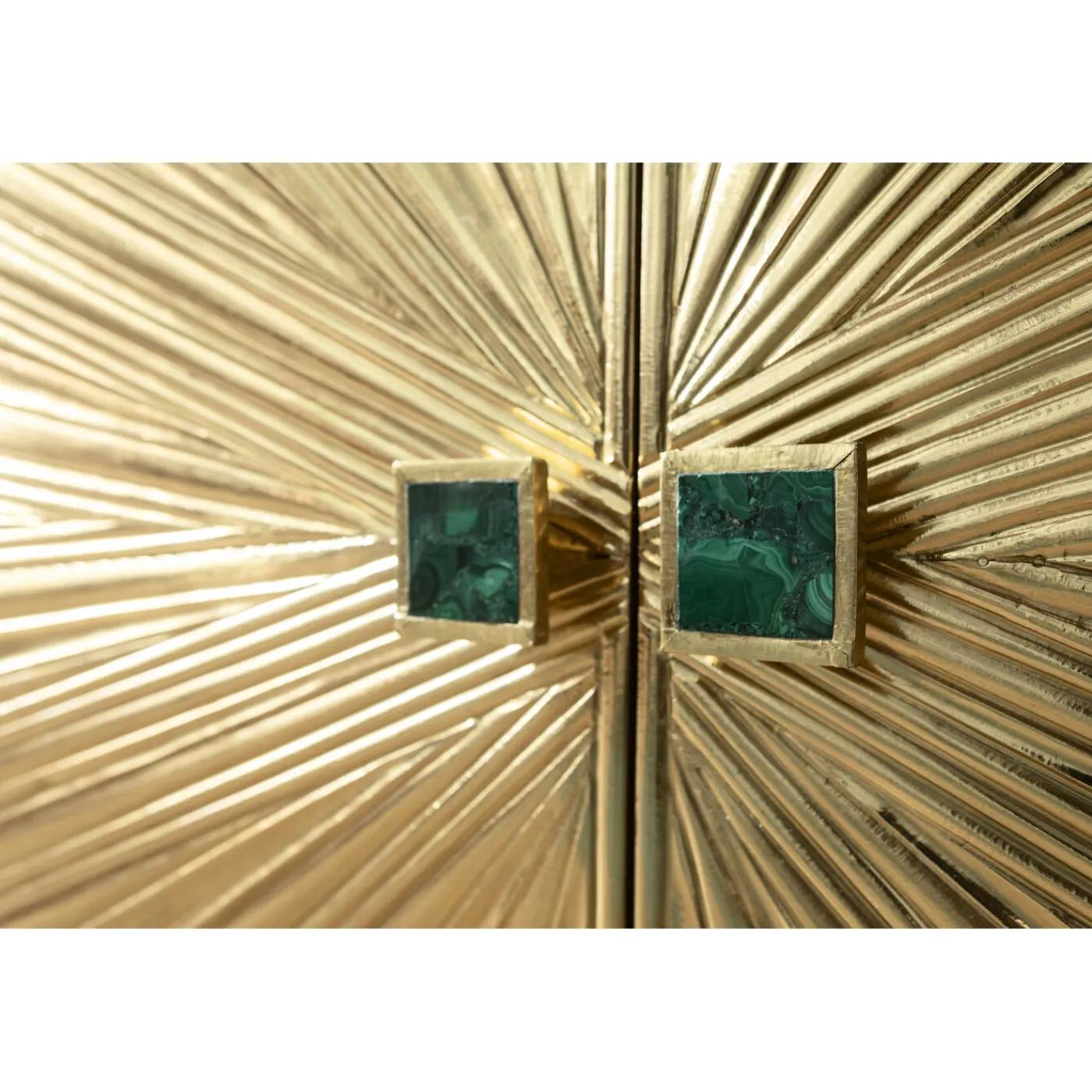 - Magnificent Golden Sideboard With Relief Surfaces And Green Handles