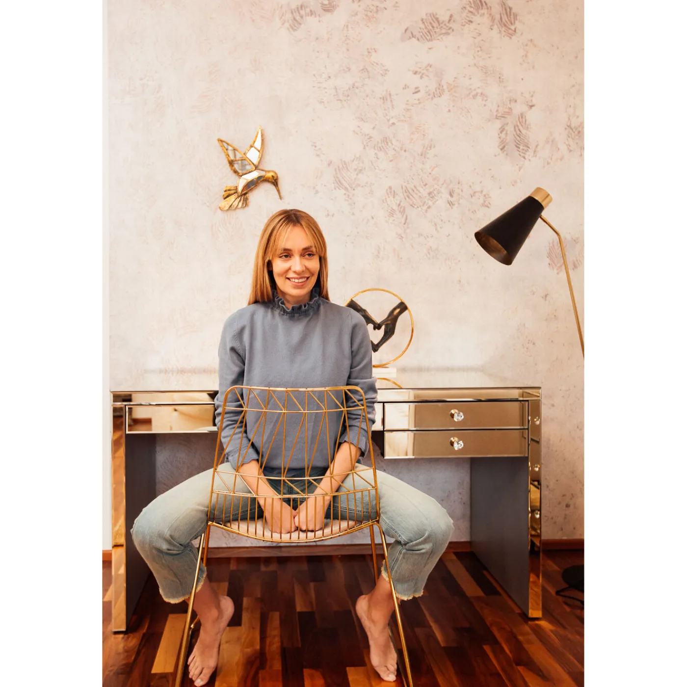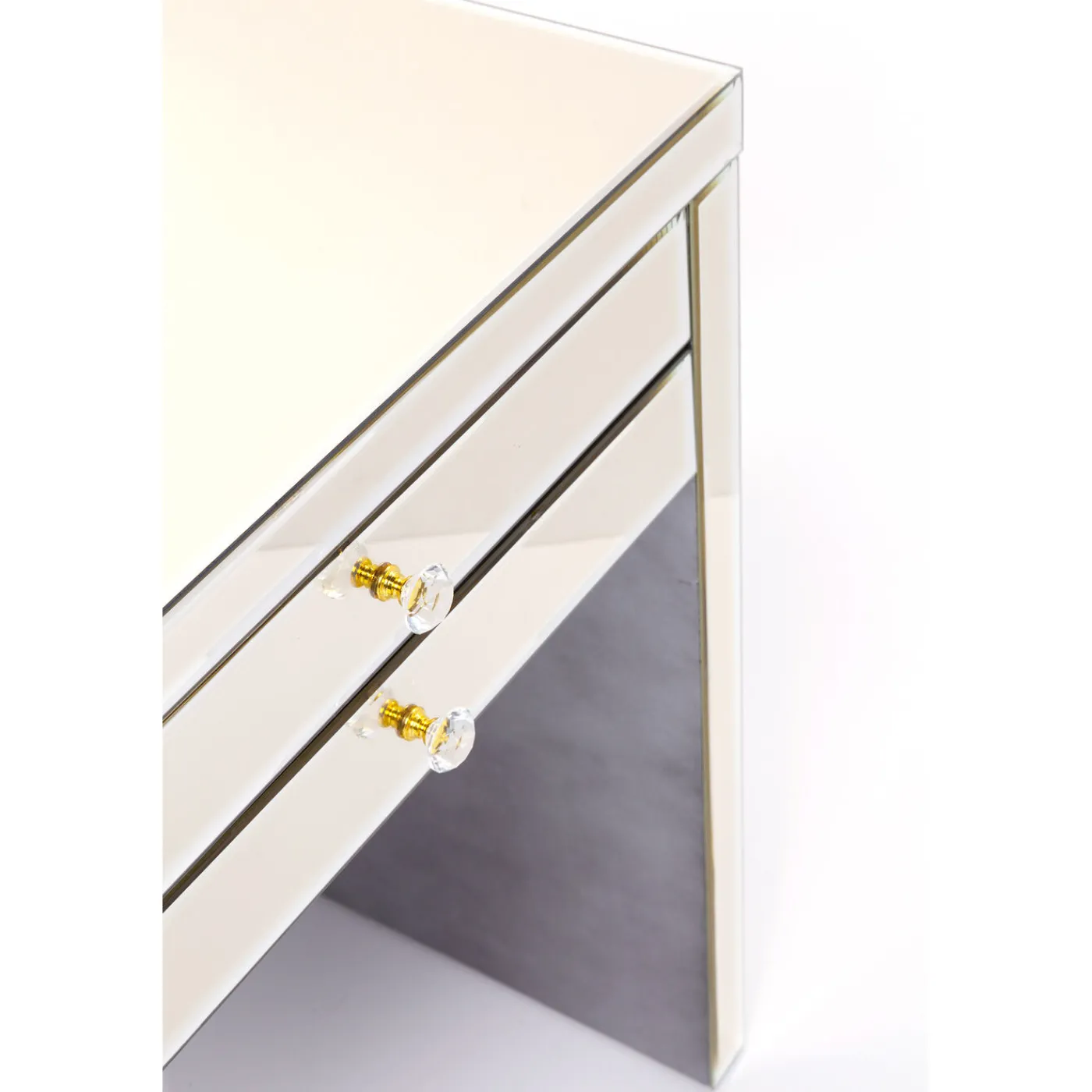 - Luxurious,Mirrored Desk With Elegant Glass Handles And Storage Space In Three Drawers.