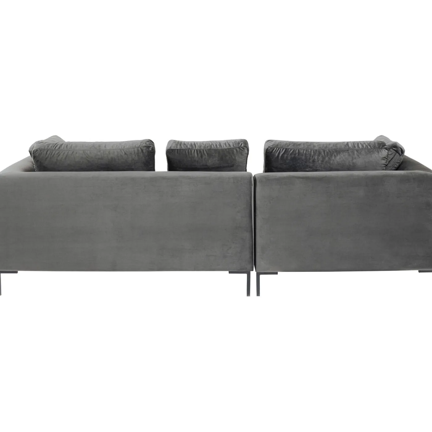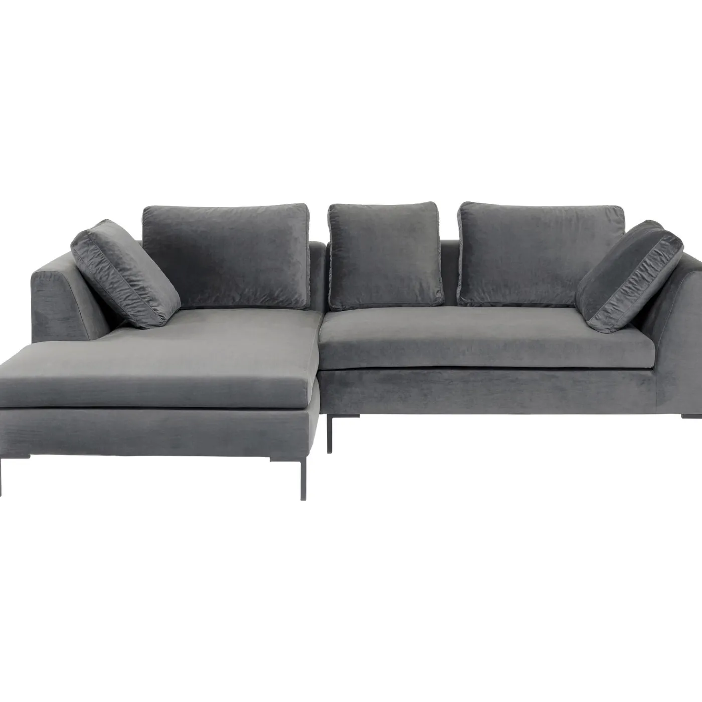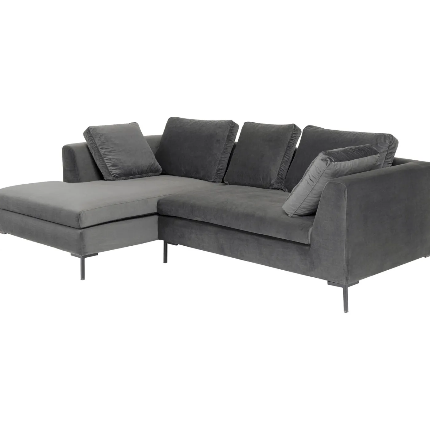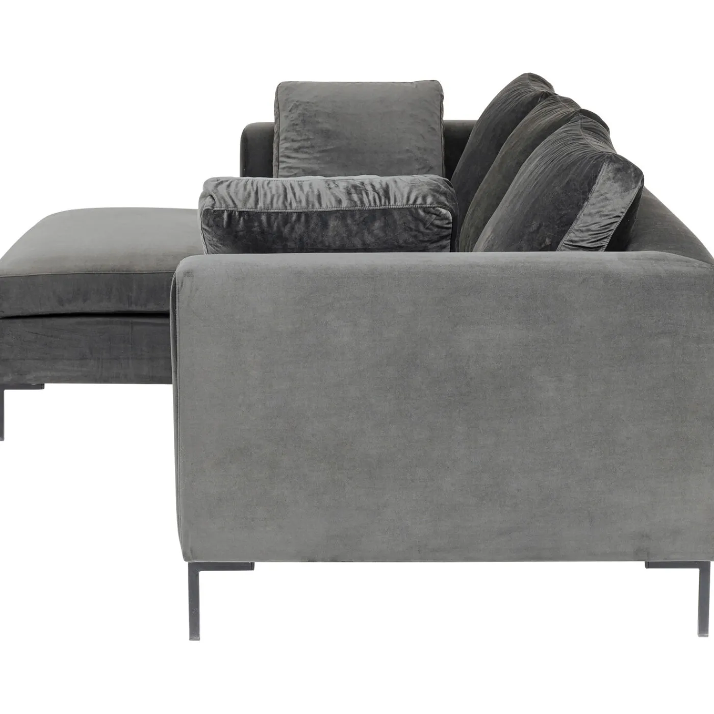 - Canapés D’Angle Confortable En Gris Avec Ottomane A Gauche Dans Un Look Velours Elegant