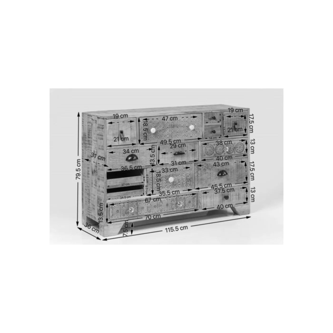 - This Gem Is A Wooden Dresser With 14 Drawers And Colourful,Graphic Fronts