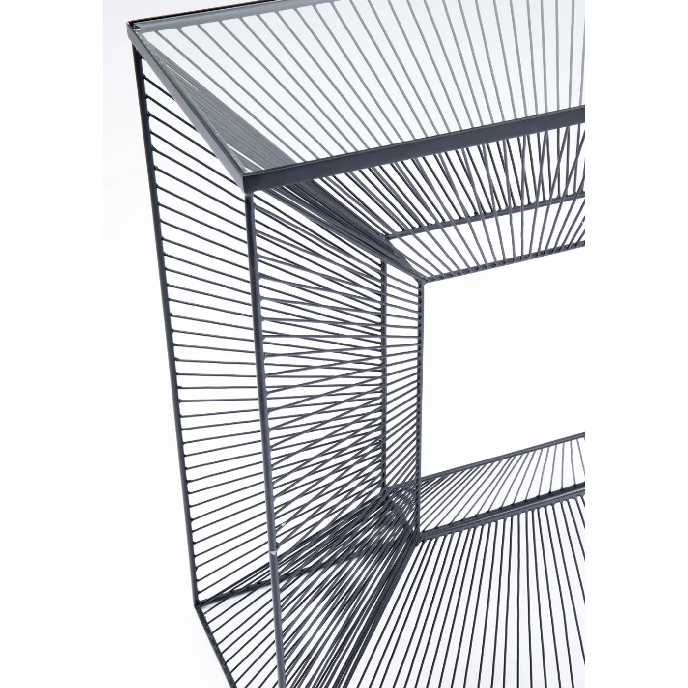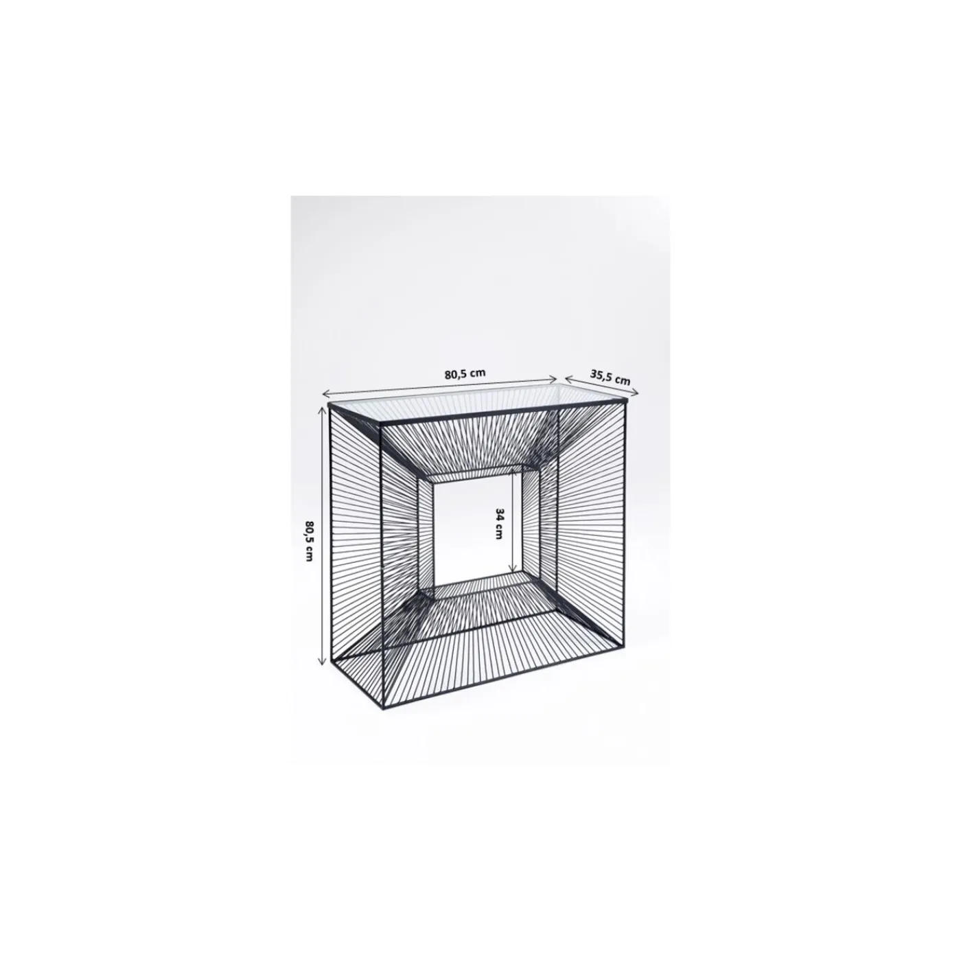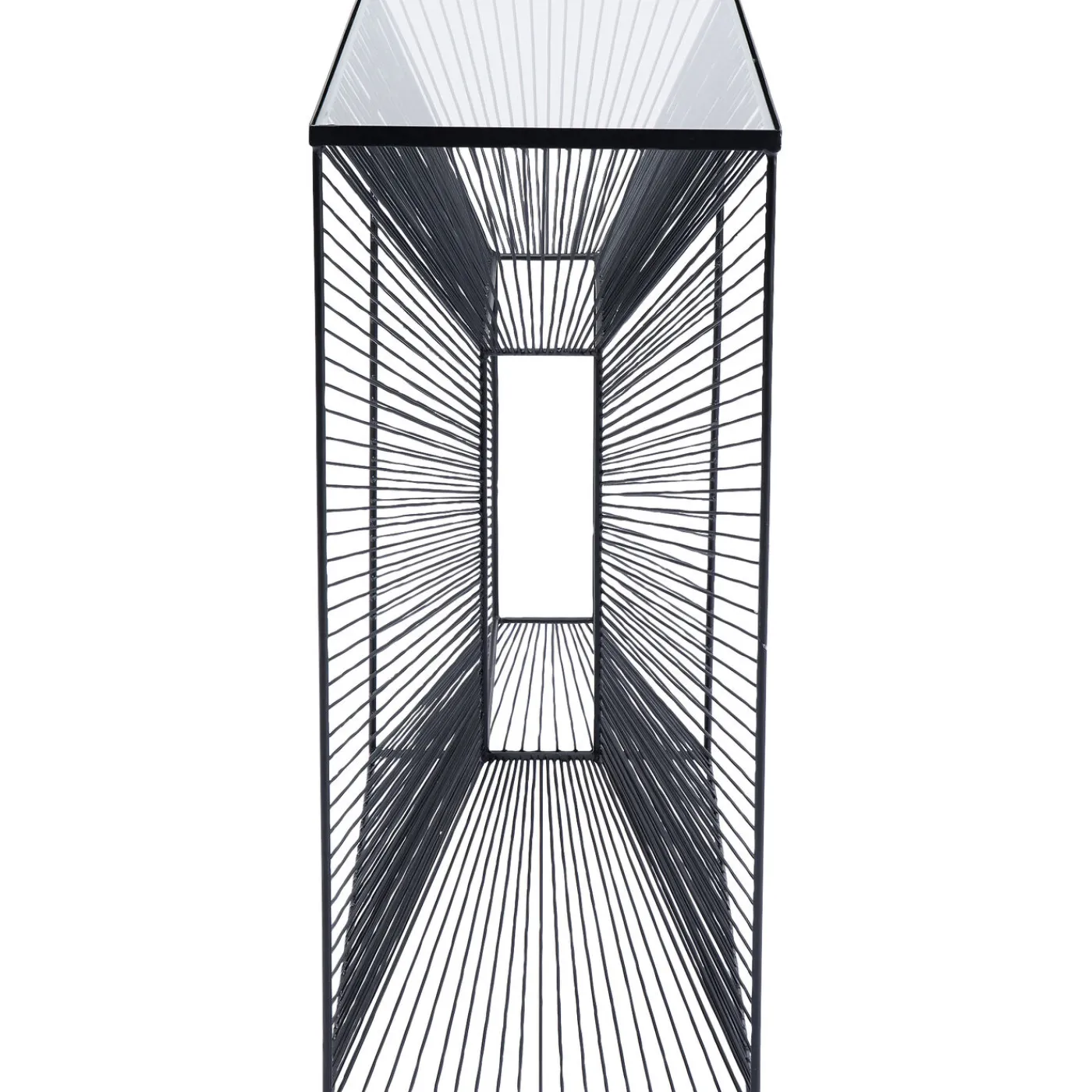 - A Console Table With A Glass Top,Which Looks Like A Modern Art Object Due To Its Graphic Steel Wire Frame