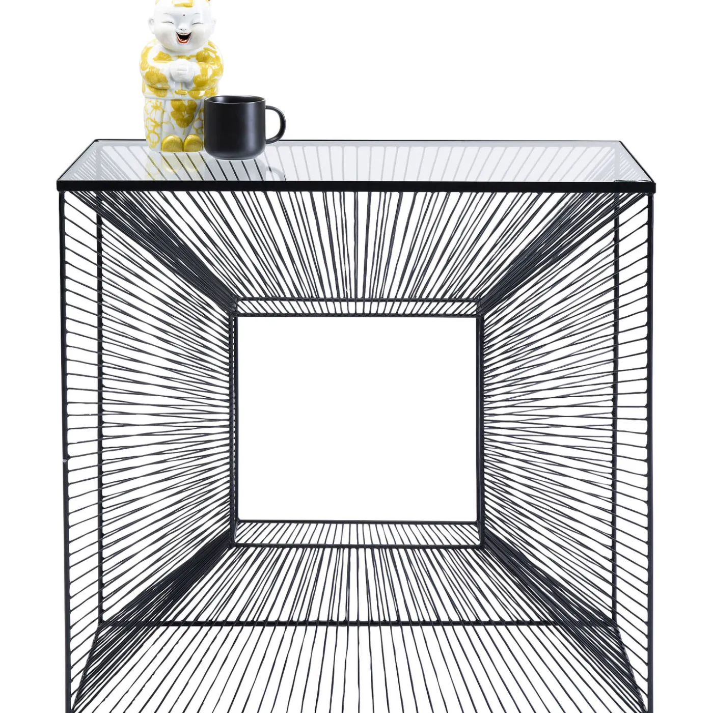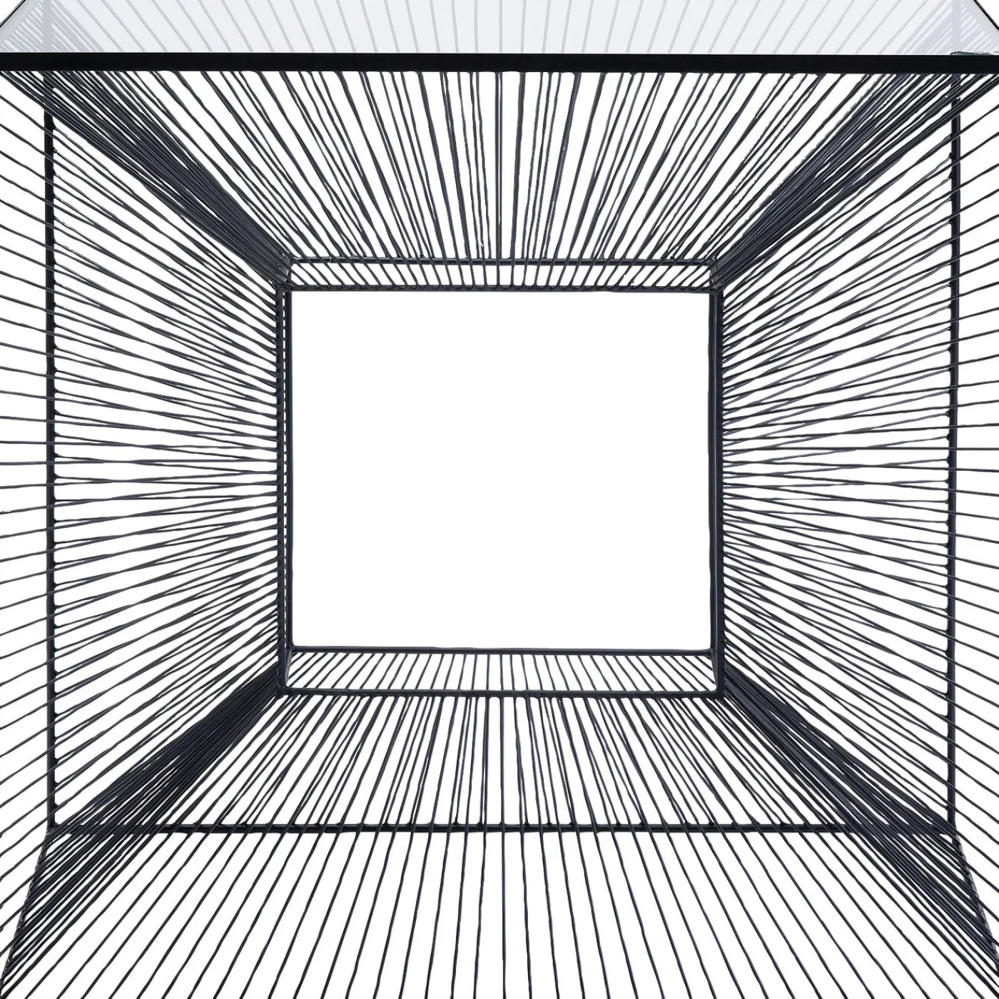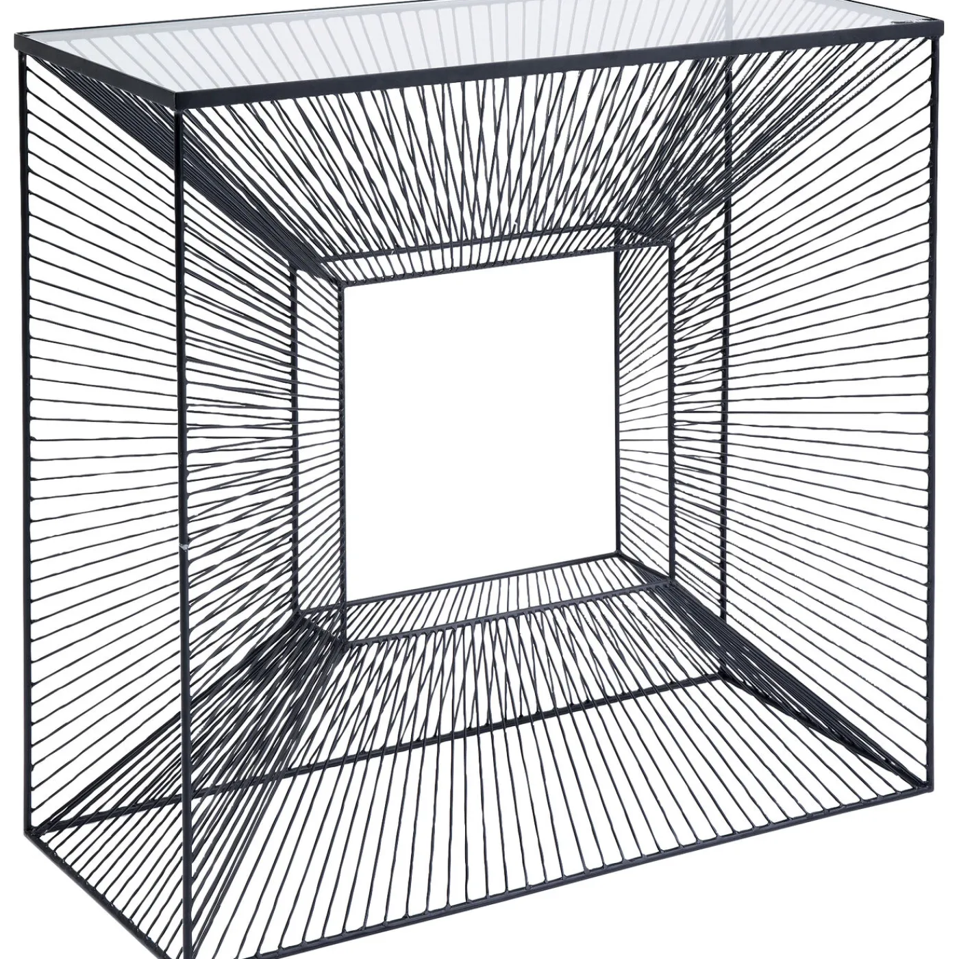 - A Console Table With A Glass Top,Which Looks Like A Modern Art Object Due To Its Graphic Steel Wire Frame
