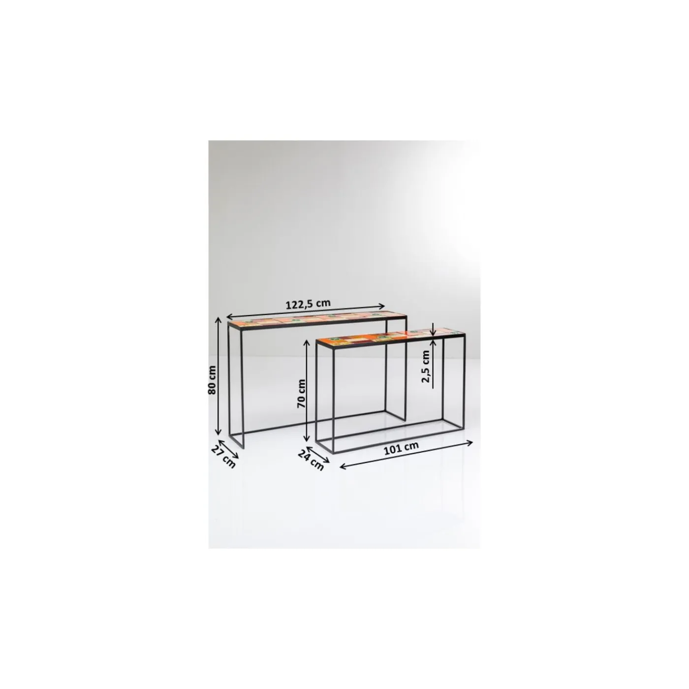 - A Set Of Two Console Tables Which Clearly Stands Out From Traditional Wall-Mounted Tables Thanks To Their Colourful Ceramic Mosaics