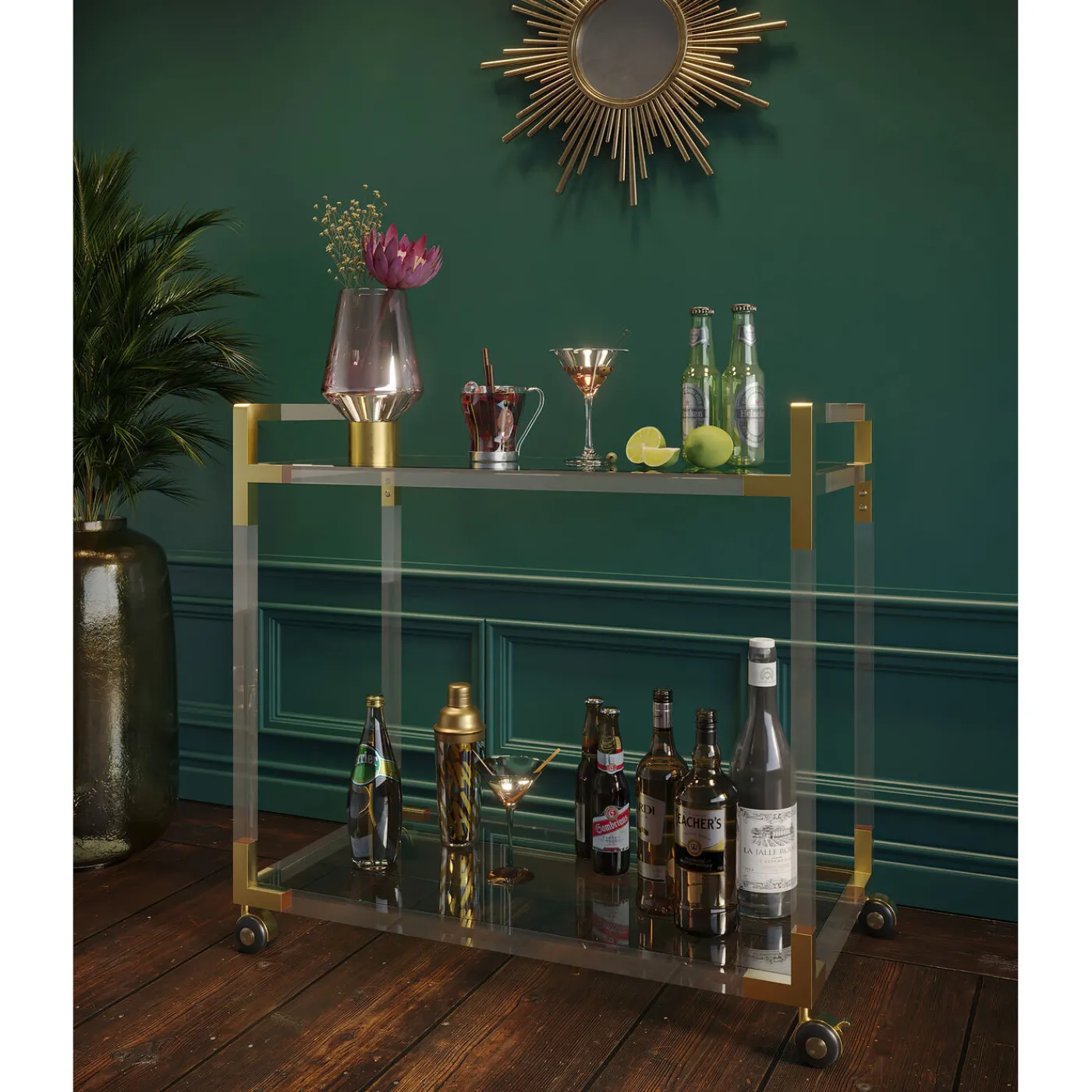 Le Chariot De Bar Et De Service Josy Aurait Fait Le Bonheur De Gatsby Le Magnifique : Cette Piece Glamour Combine L Acrylique,Le Verre De Securite Et L Acier Laque Epoxy Pour Attirer Tous Les Regards. Servez Des Boissons Sophistiquees Et Faites-Les Rouler Directement Vers Vos Invites Ebahis. Vous Trouverez Les Accessoires Assortis Comme Les Verres Et La Décoration Dans La Boutique En Ligne De Kare.