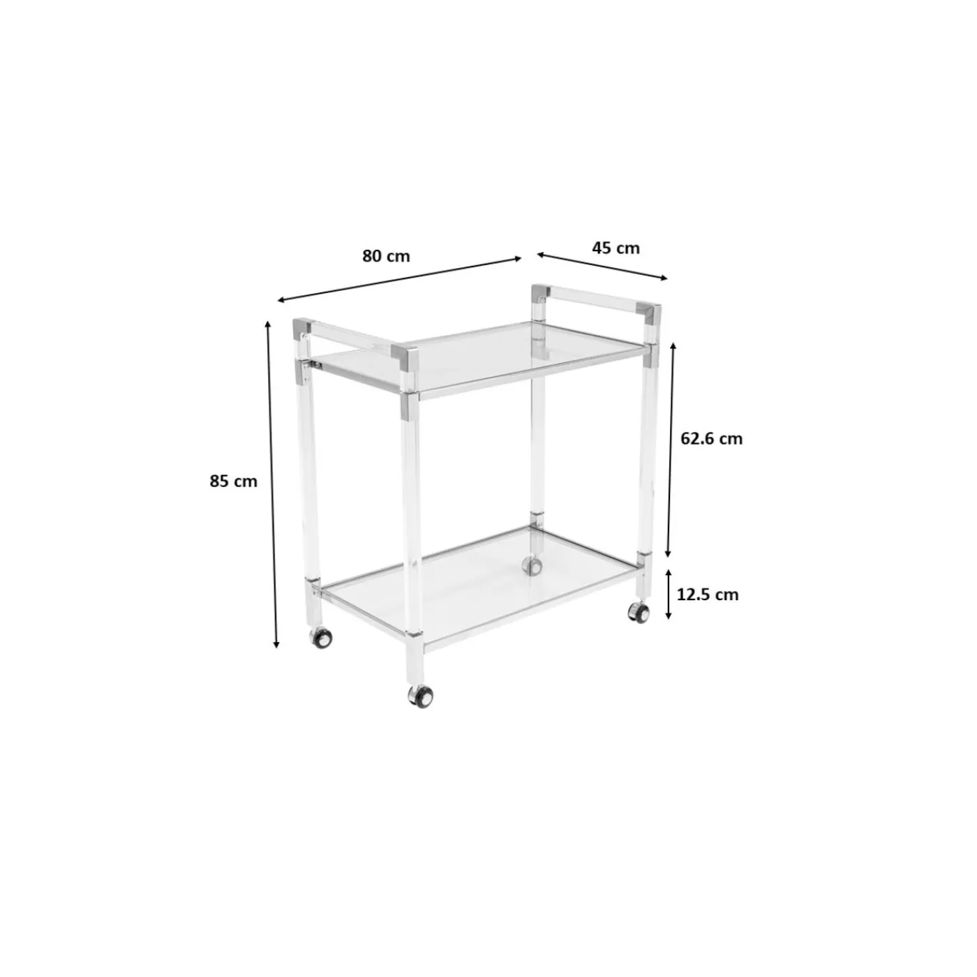 Informations Sur Les Produits: Structure: Polymethylmethacrylate,Acier Revetu Par Poudre,Tablette: Verre Verre Trempe Esg Clair,30 Kg Capacite De Charge Maximale,Sur Roulettes,Livraison Partiellement Demonte