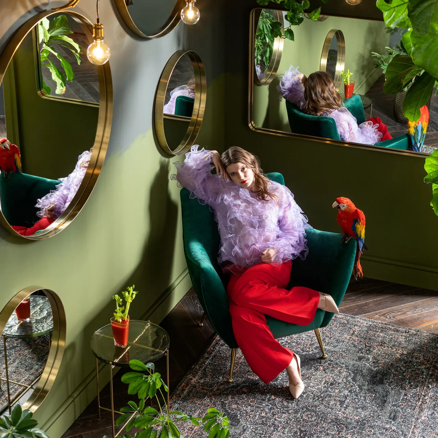 - Hot Stuff! This Upholstered Armchair In Emerald Green Entices You With Its Hot Curves And Slim,Golden Legs