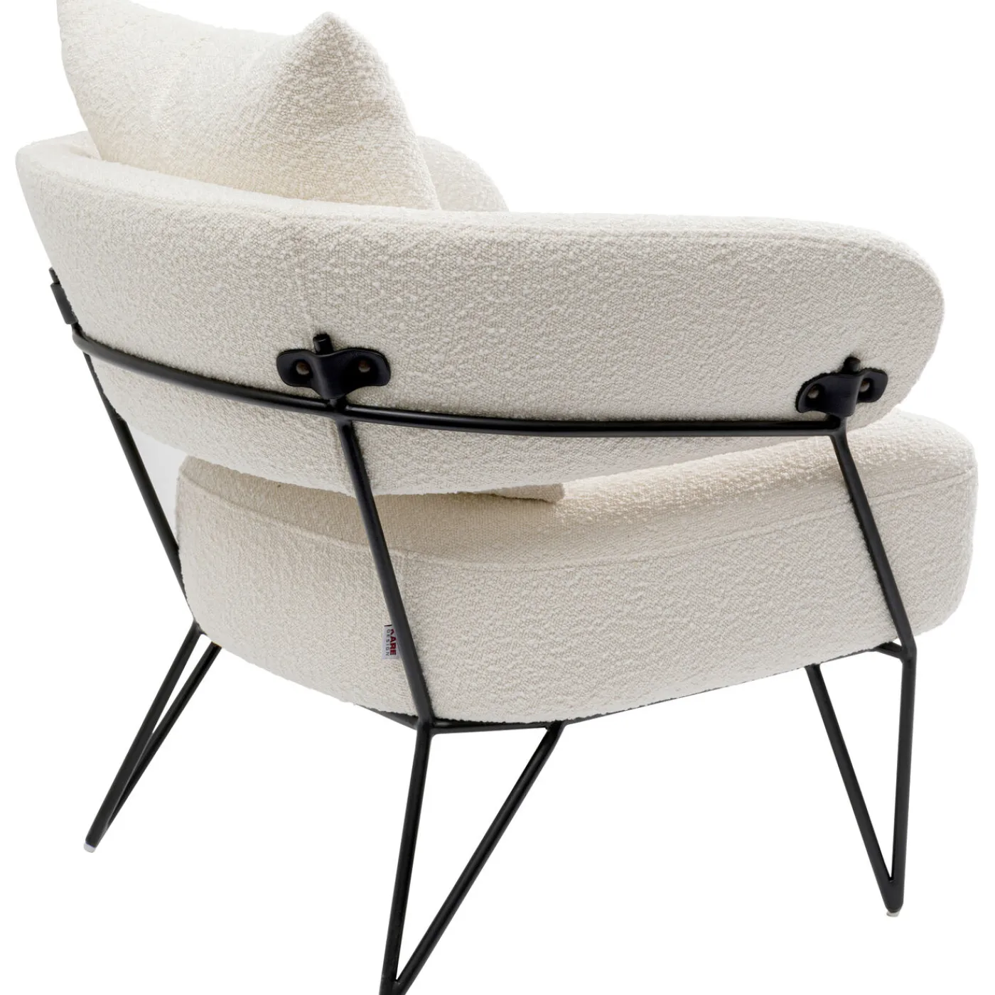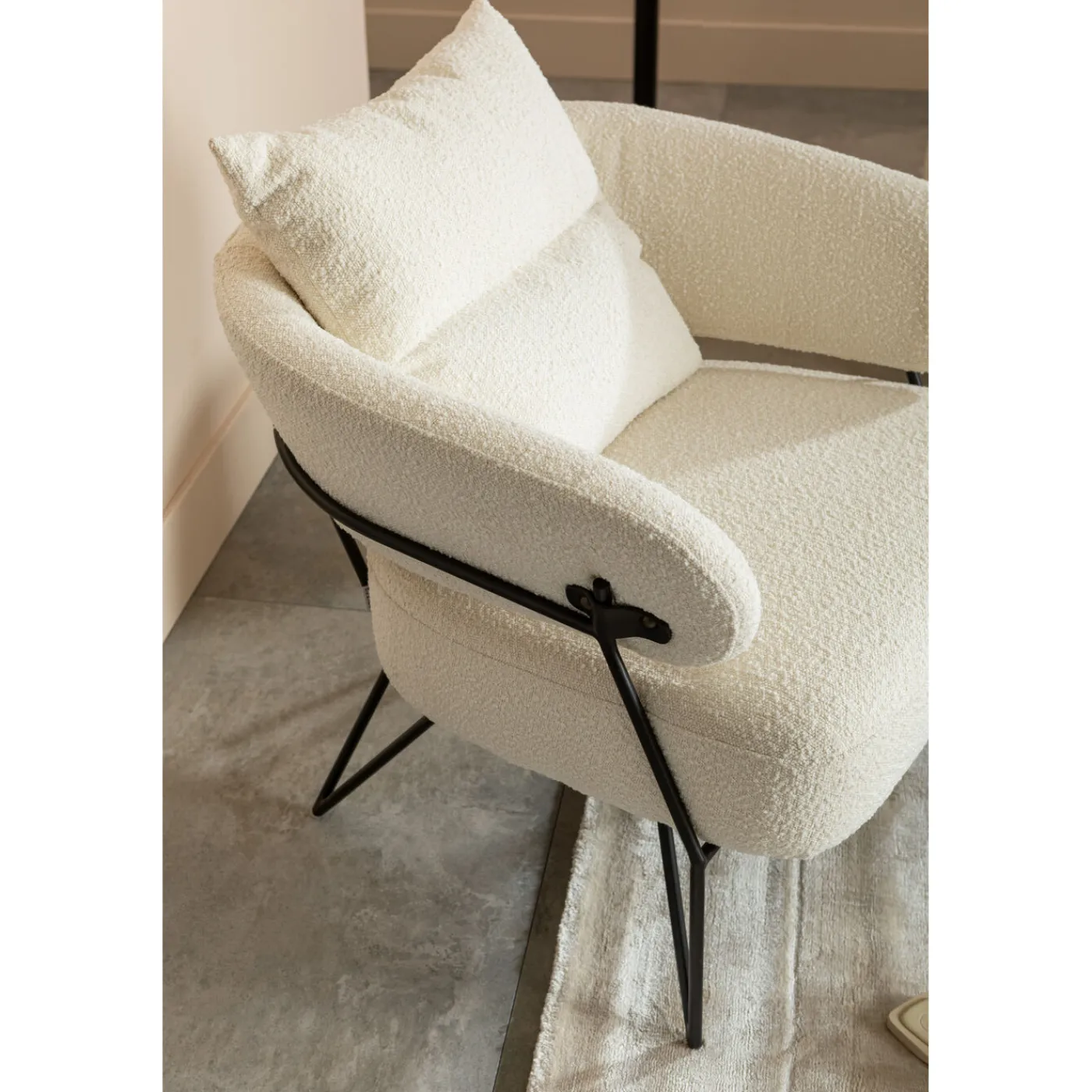 Leger Et Resolument Moderne,Ce Fauteuil Blanc Recouvert De Tissu Est Un Veritable Bijou Dans Le Salon Et La Chambre A Coucher. Blanc Avec Des Pieds Noirs En Metal,Il Apporte De La Fraicheur A La Piece. Ses Formes Douces Et Organiques Rendent Le Look Harmonieux. La Cerise Sur Le Gateau Est Le Tissu Boucle Avec Ses Fines Boucles Et Noeuds. Car Les Specialistes De L Interieur Le Savent Bien : Le Melange De Differentes Textures Est La Recette Secrete Pour Creer Une Ambiance Vivante. Profitez Du Confort D Assise Avec Une Hauteur D Assise De 47 Cm,Un Rembourrage En Mousse Et Un Coussin Froisse.