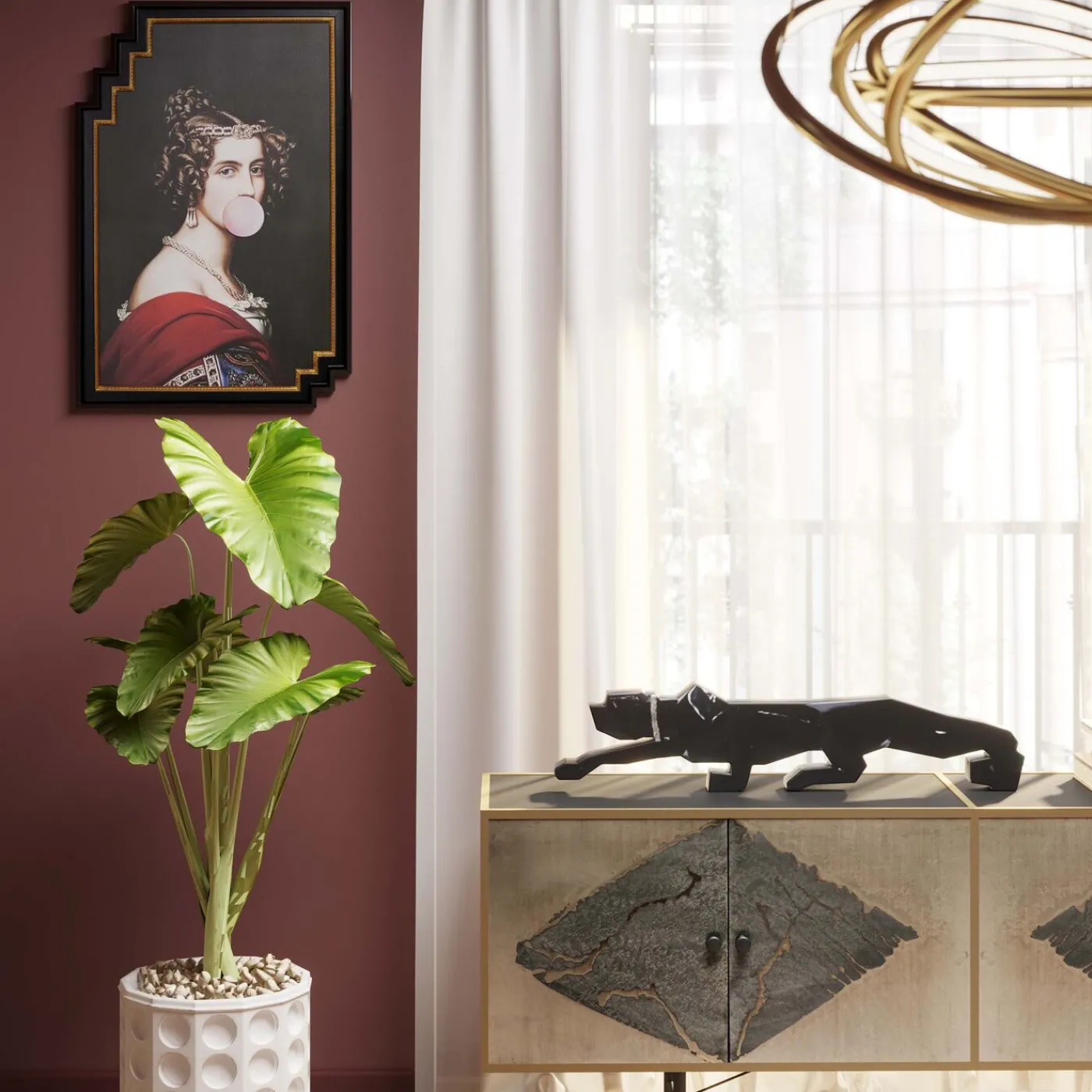 Une Fameuse Etude Sur Les Predateurs! La Panthere Déco Noire Nous Seduit Pas Son Attitude De Chasseuse. Tout En Noir,L Animal Est Dompte Avec Son Collier En Strass.