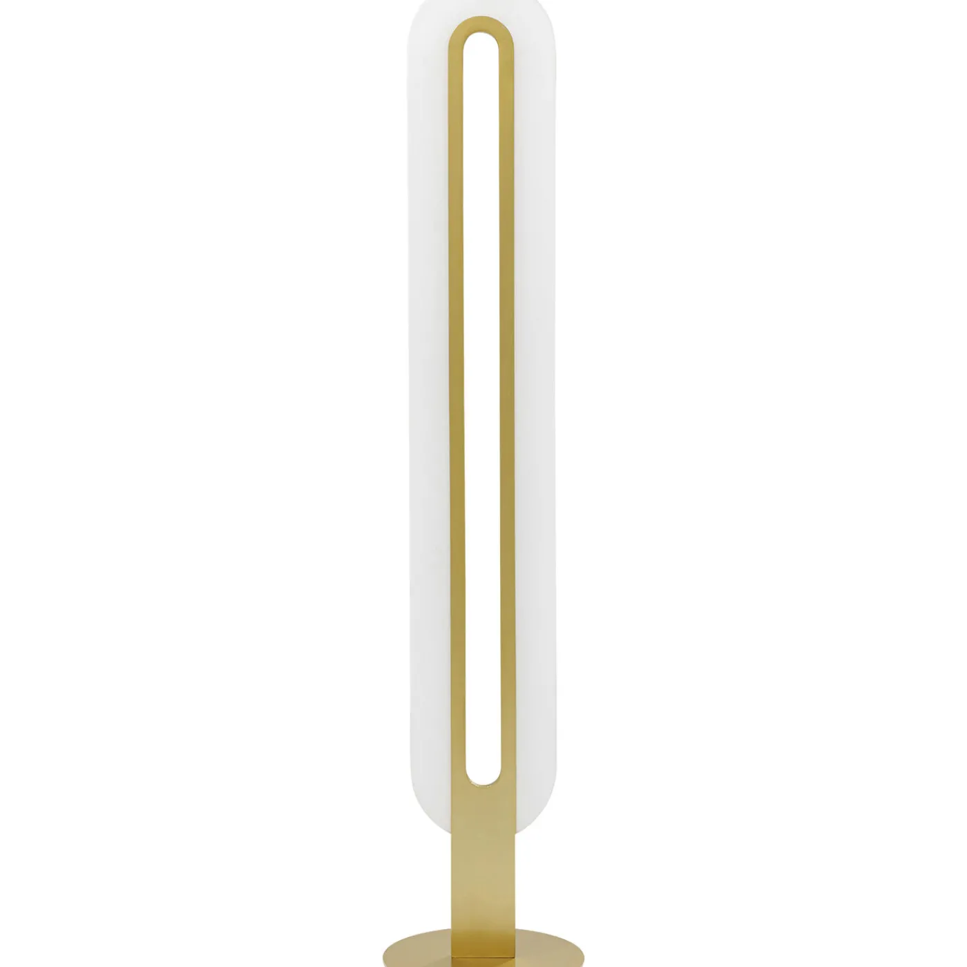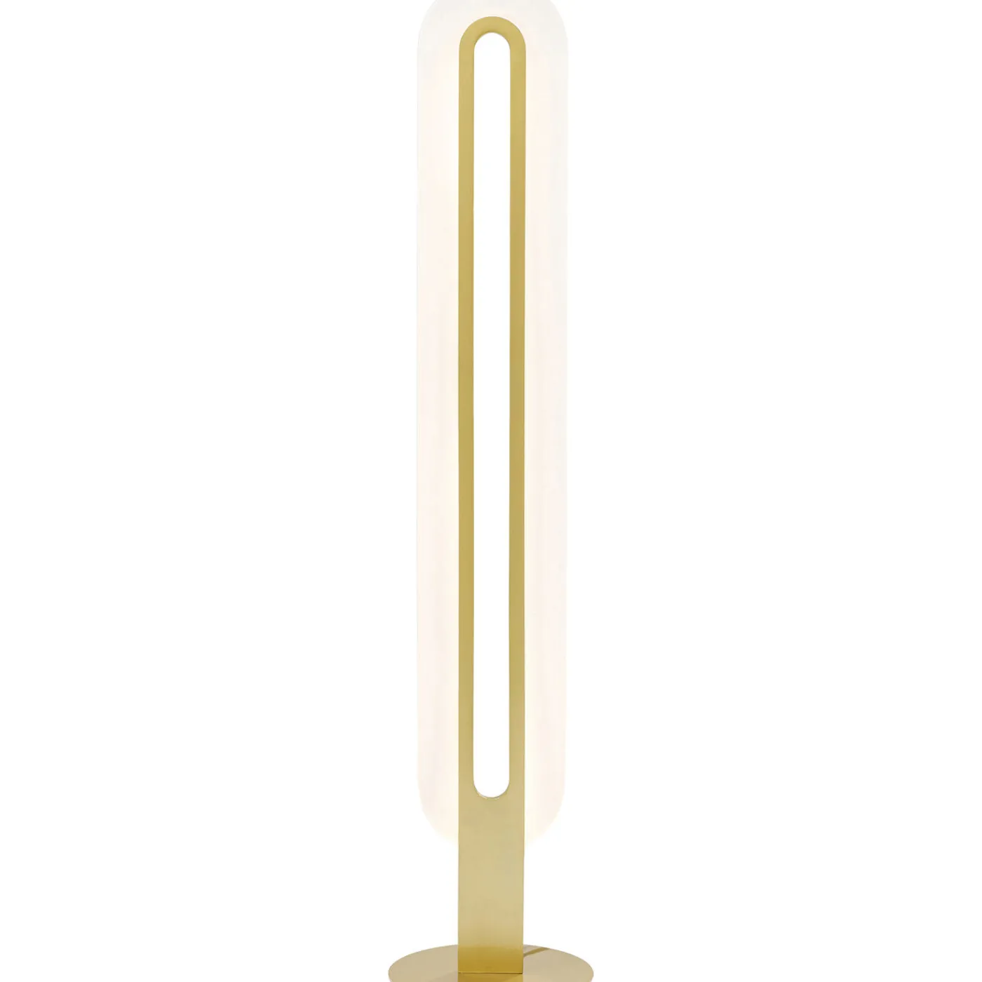 - A Purist,Tall Floor Lamp In The Shape Of A Gold-Coloured Pillar. Leds Illuminate The Milk-White,Matt Oval Made Of Resistant Plastic