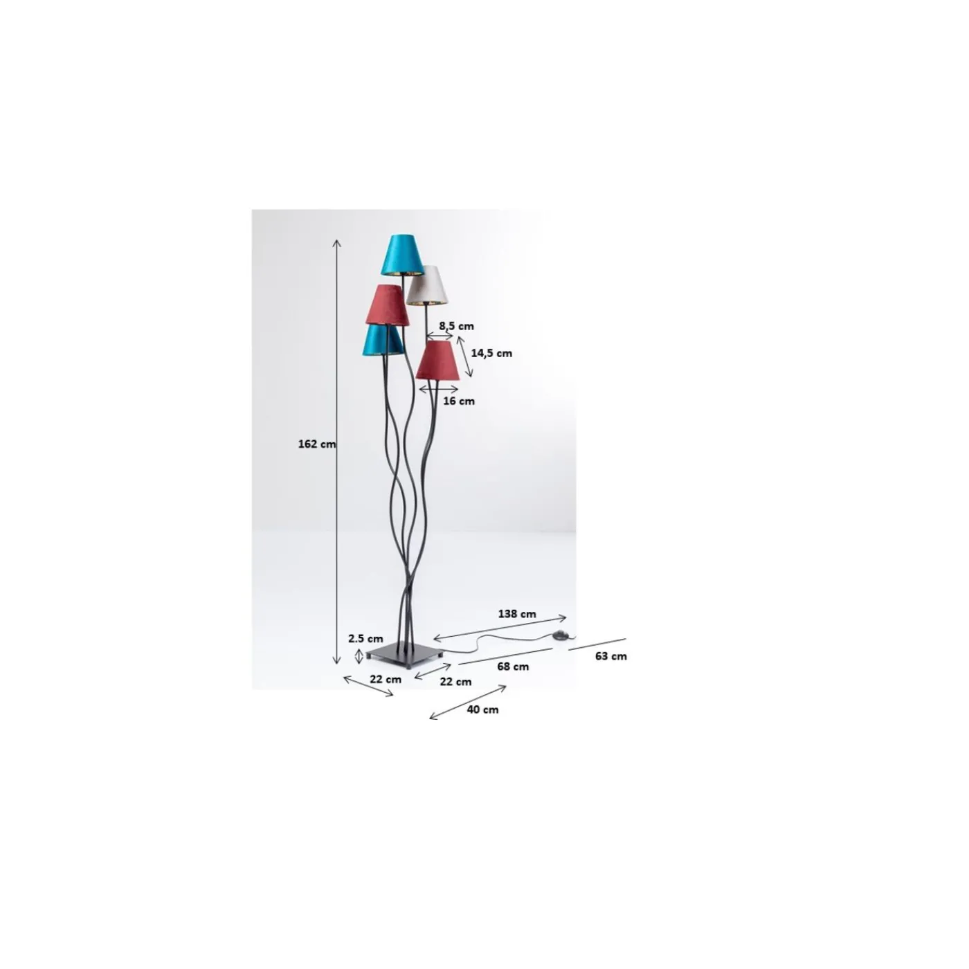 - Unusual Floor Lamp With Five Shades Of Blue,Grey And Red,Each Of Which Comes In A Pretty Velvet Dress