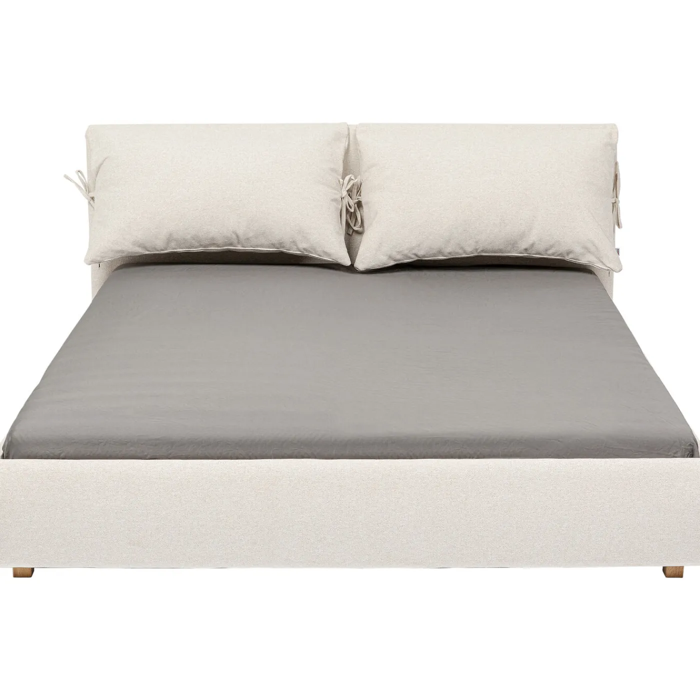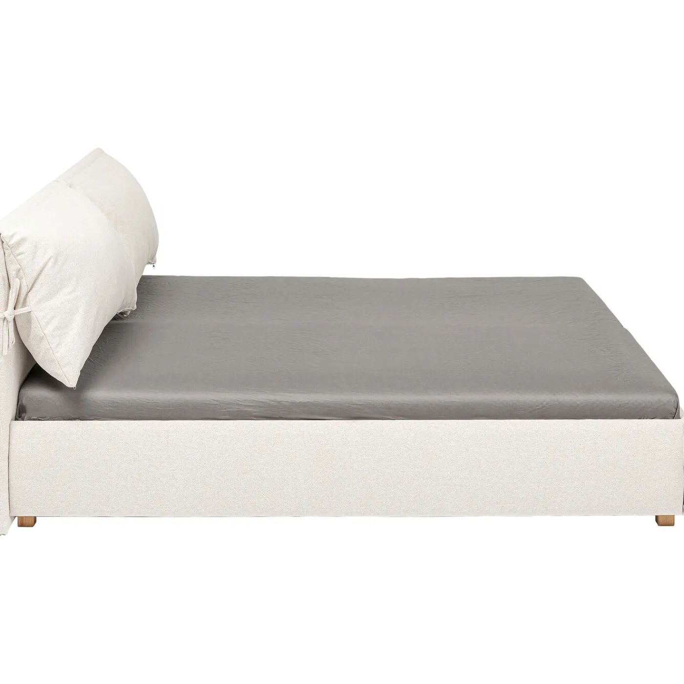 - Lit Rembourre Avec Revetement En Tissu De Couleur Creme Et Pieds Stables En Hetre Massif