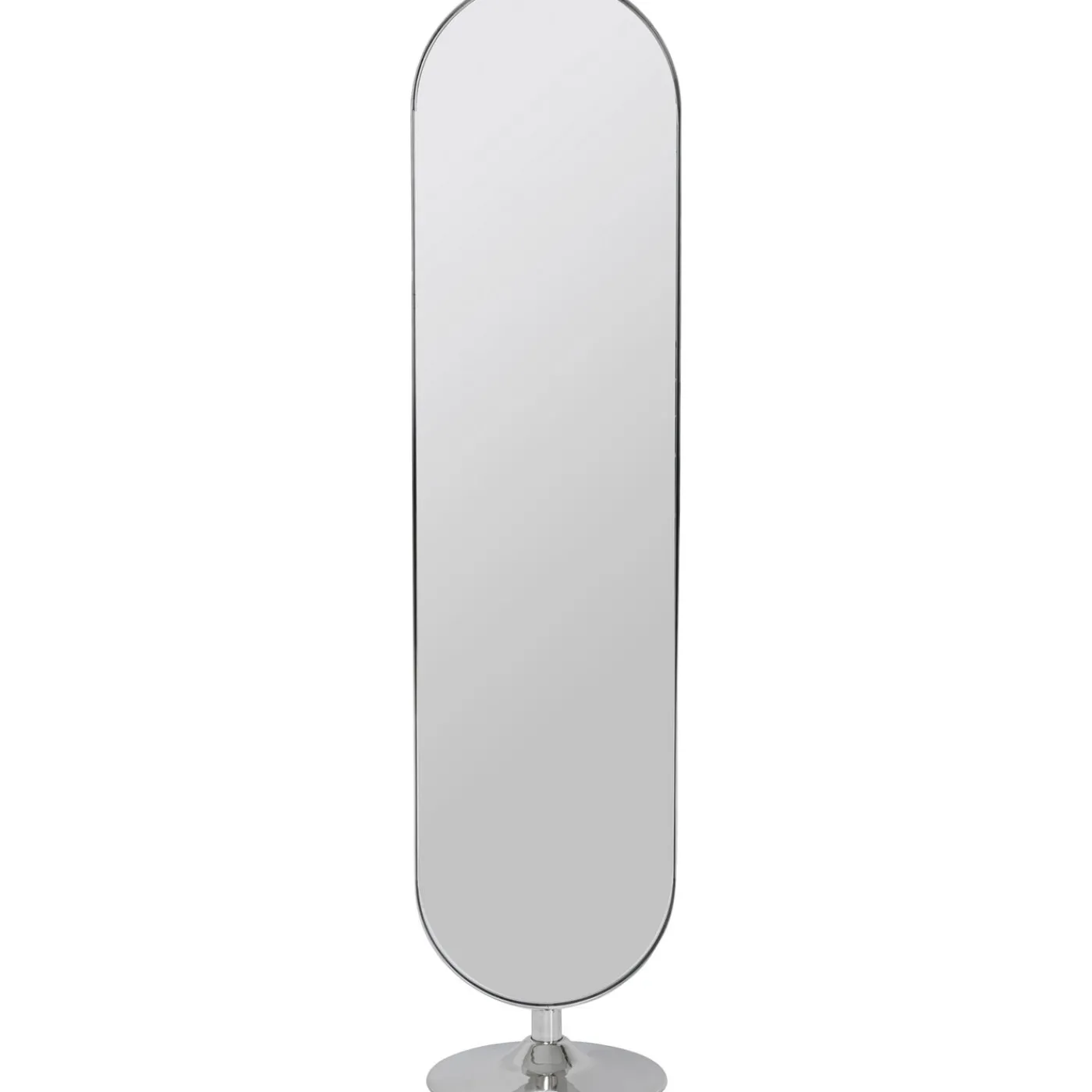 - Grand Miroir Ovale Sur Pied A Base Ronde. Un Effet Tres Glamour Grace A Son Cadre Et A Son Pied En Acier Poli