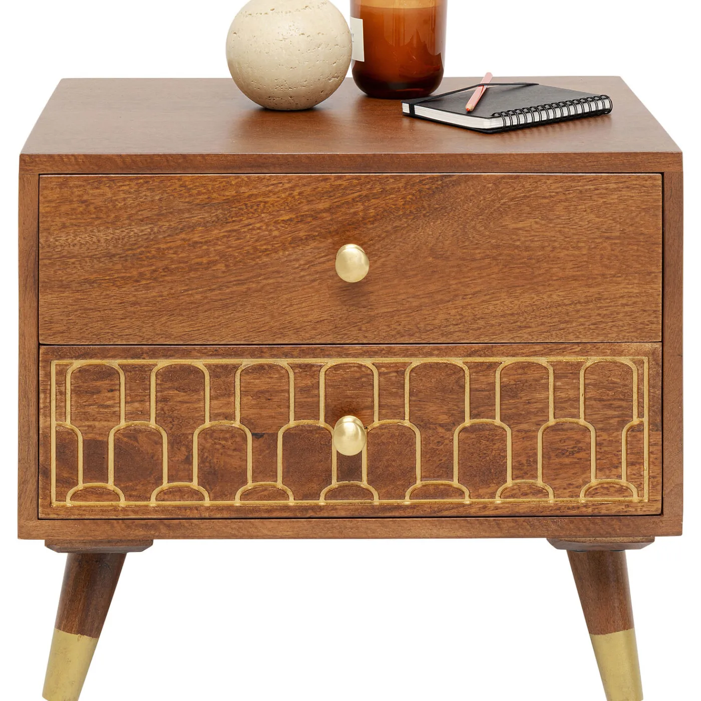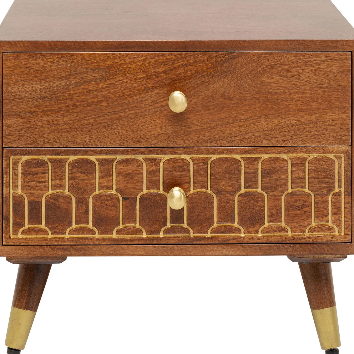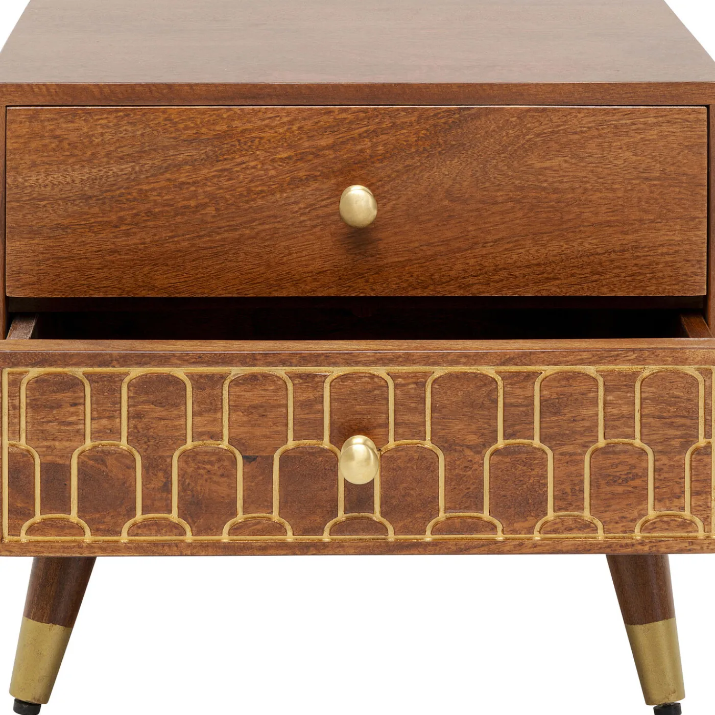 - Handmade,Compact Dresser Made Of Solid Mango Wood With Engraved,Golden Oriental Décorations And Two Doors
