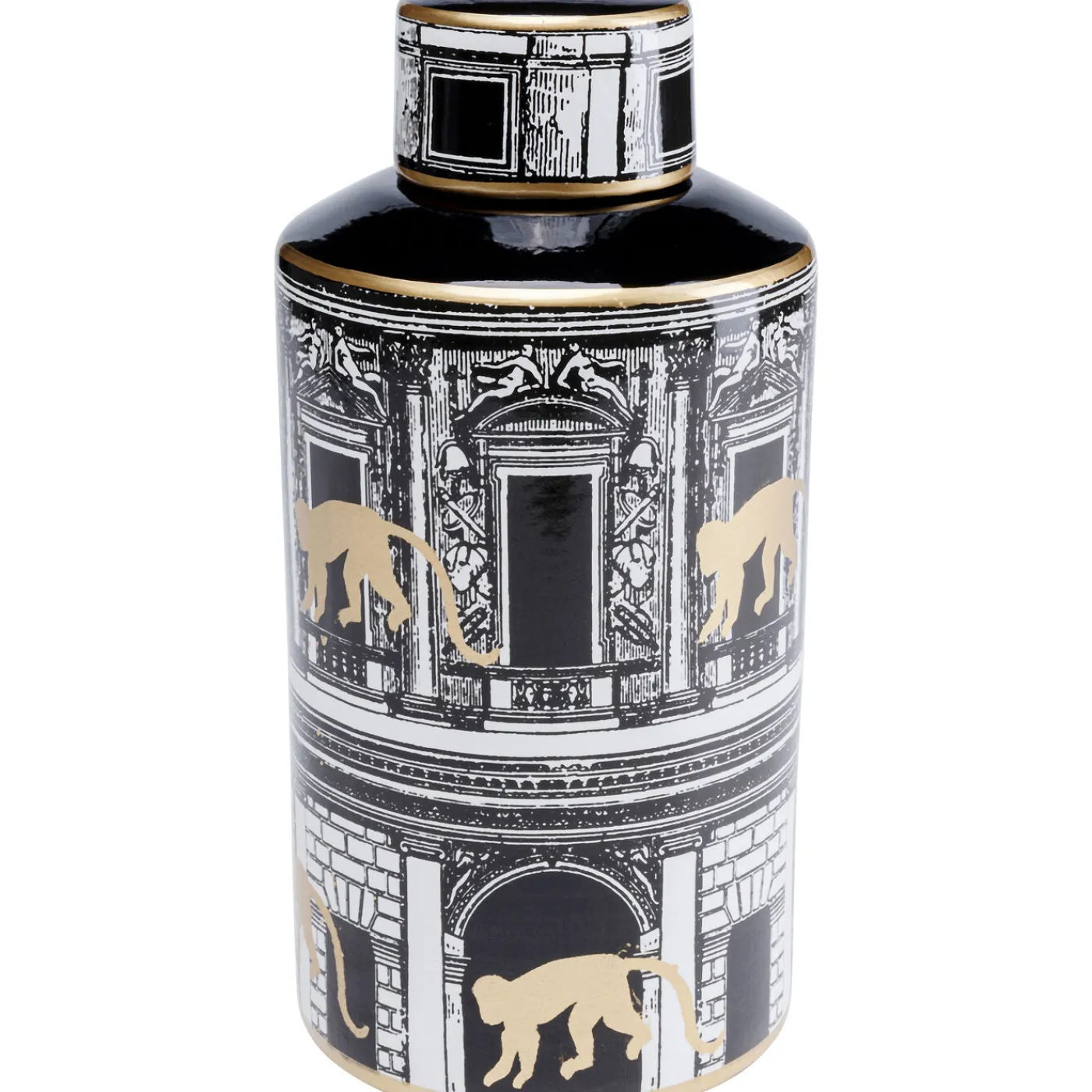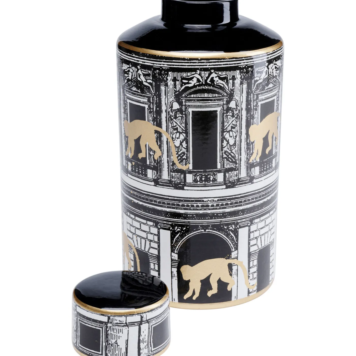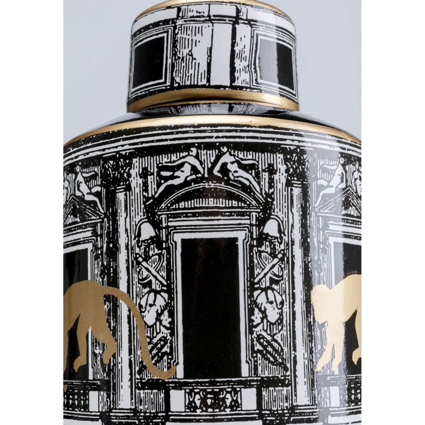 - Large Jar Made Of Porcelain With A Surprise Effect,Because The Jar With Ist Antique Motif Is Populated By Golden Monkeys