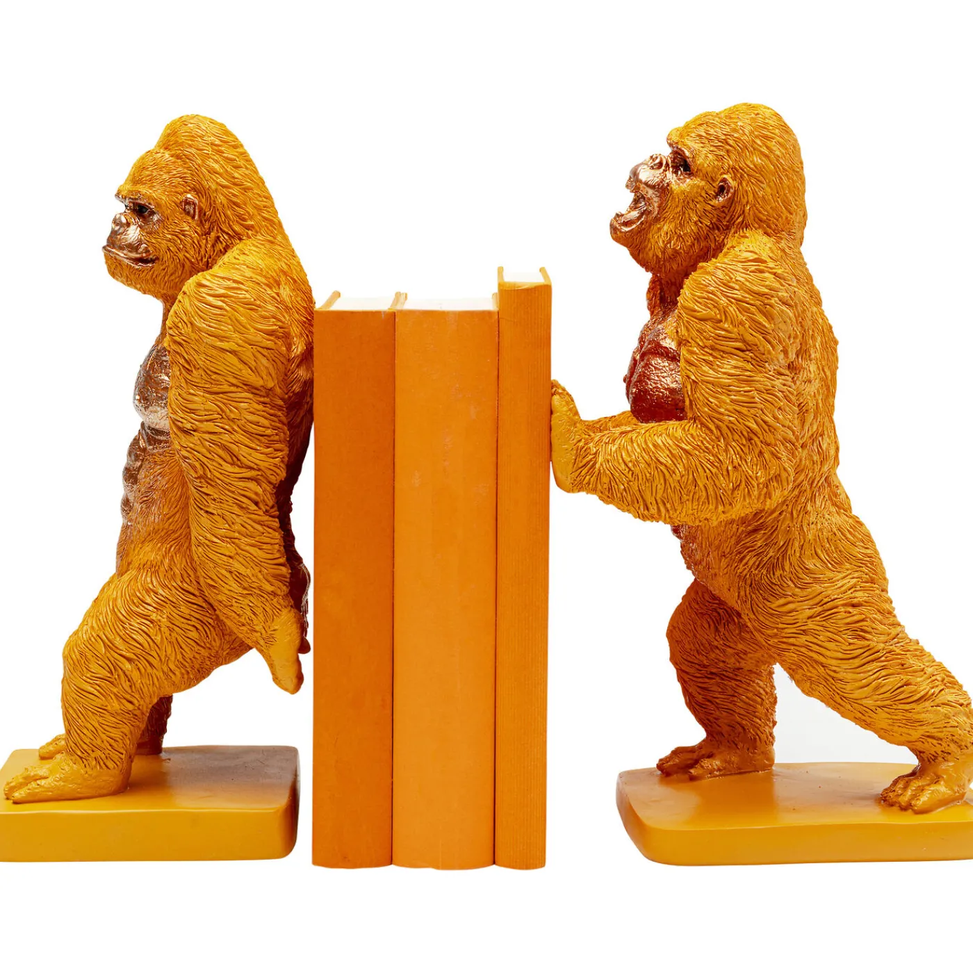 - Set Of Two Bookends In The Shape Of Gorillas In Orange With Gold-Coloured Details