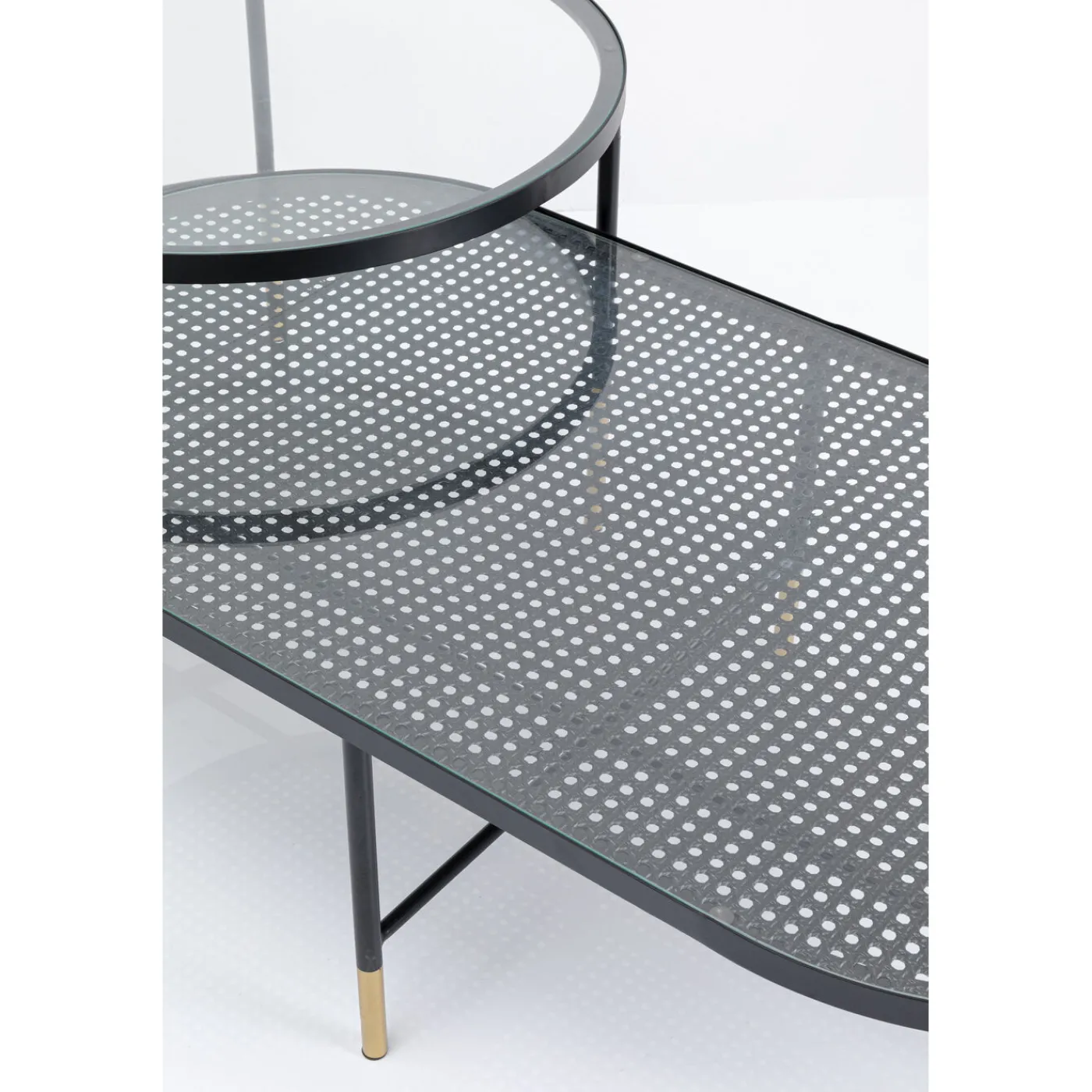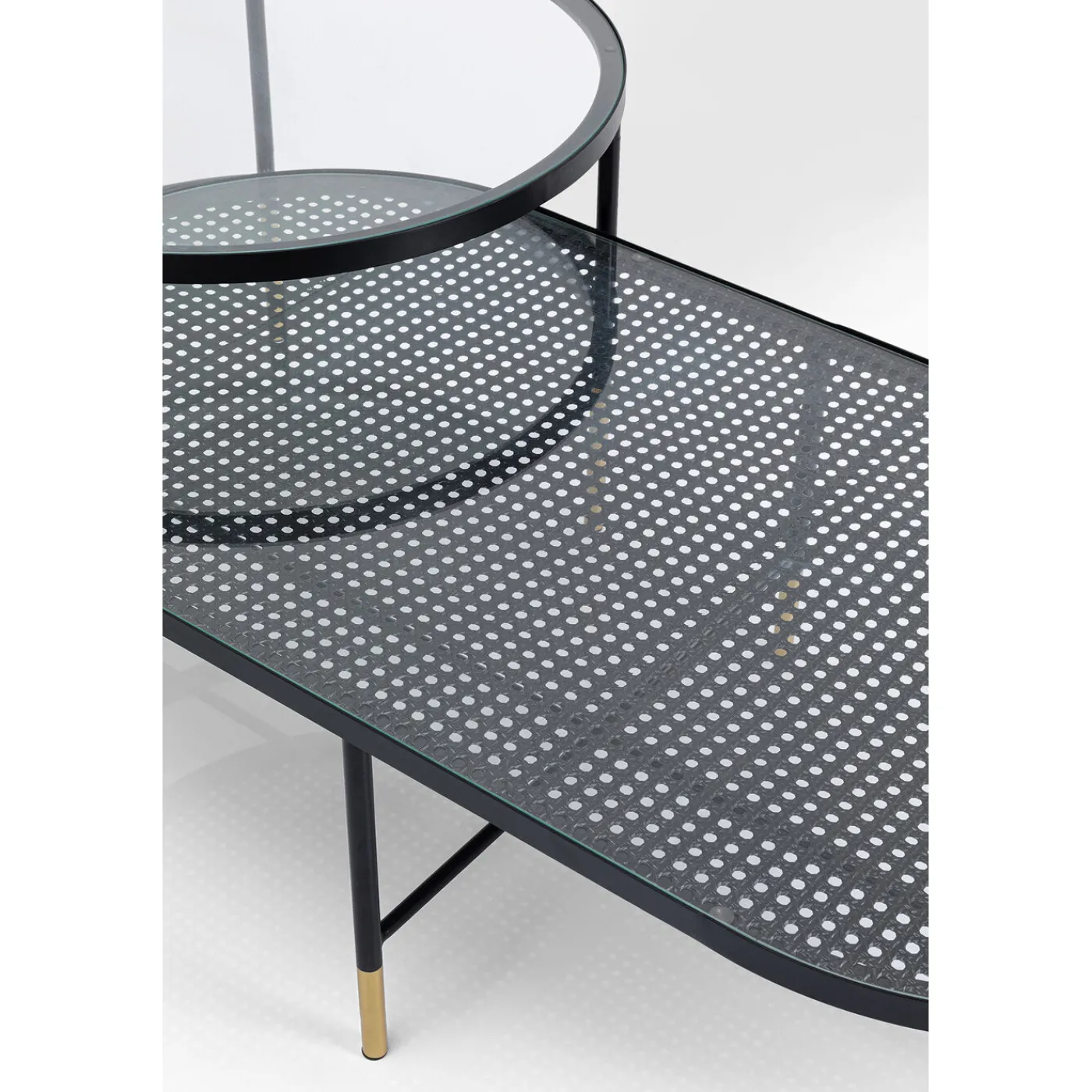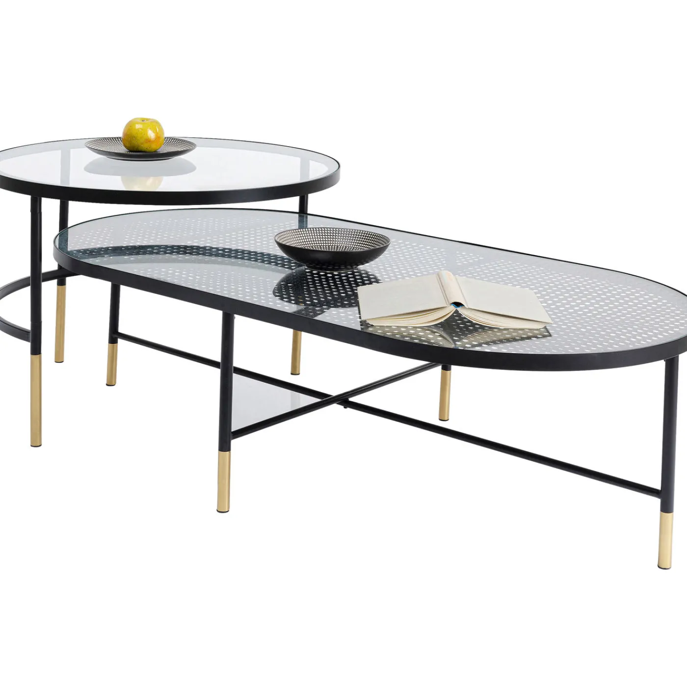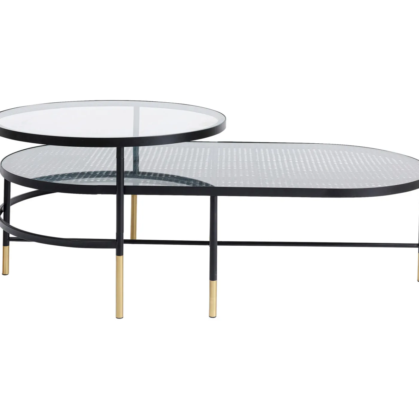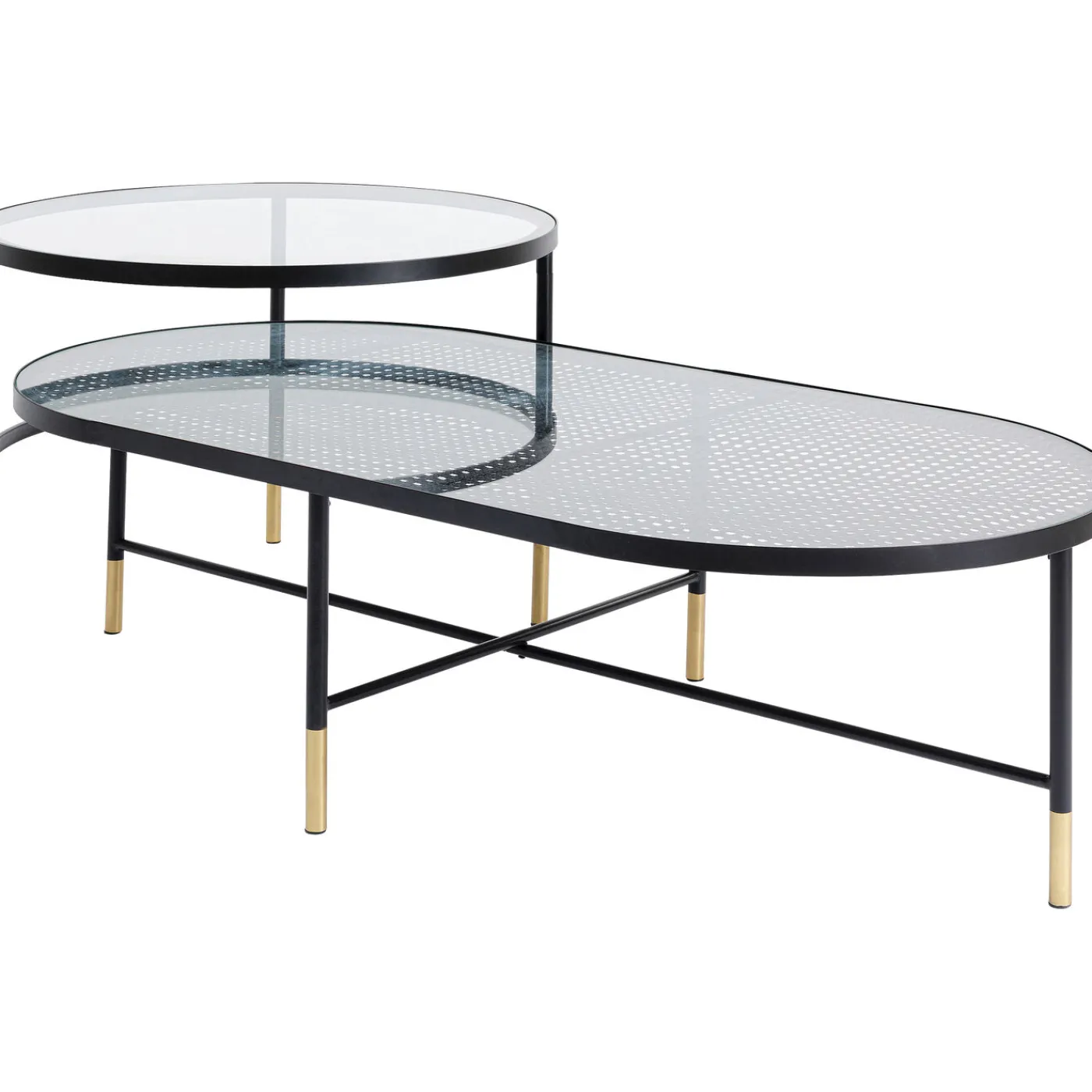 - Set Of 2 Coffee Tables,One Oval,One Round,Made Of Glass And Metal In Gold And Black,60 X 120 X 35 Cm (H/W/D)