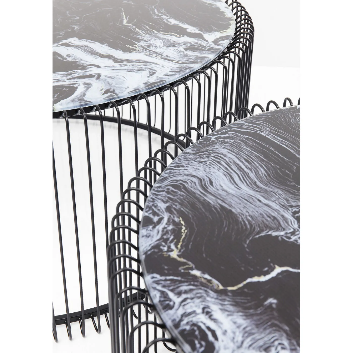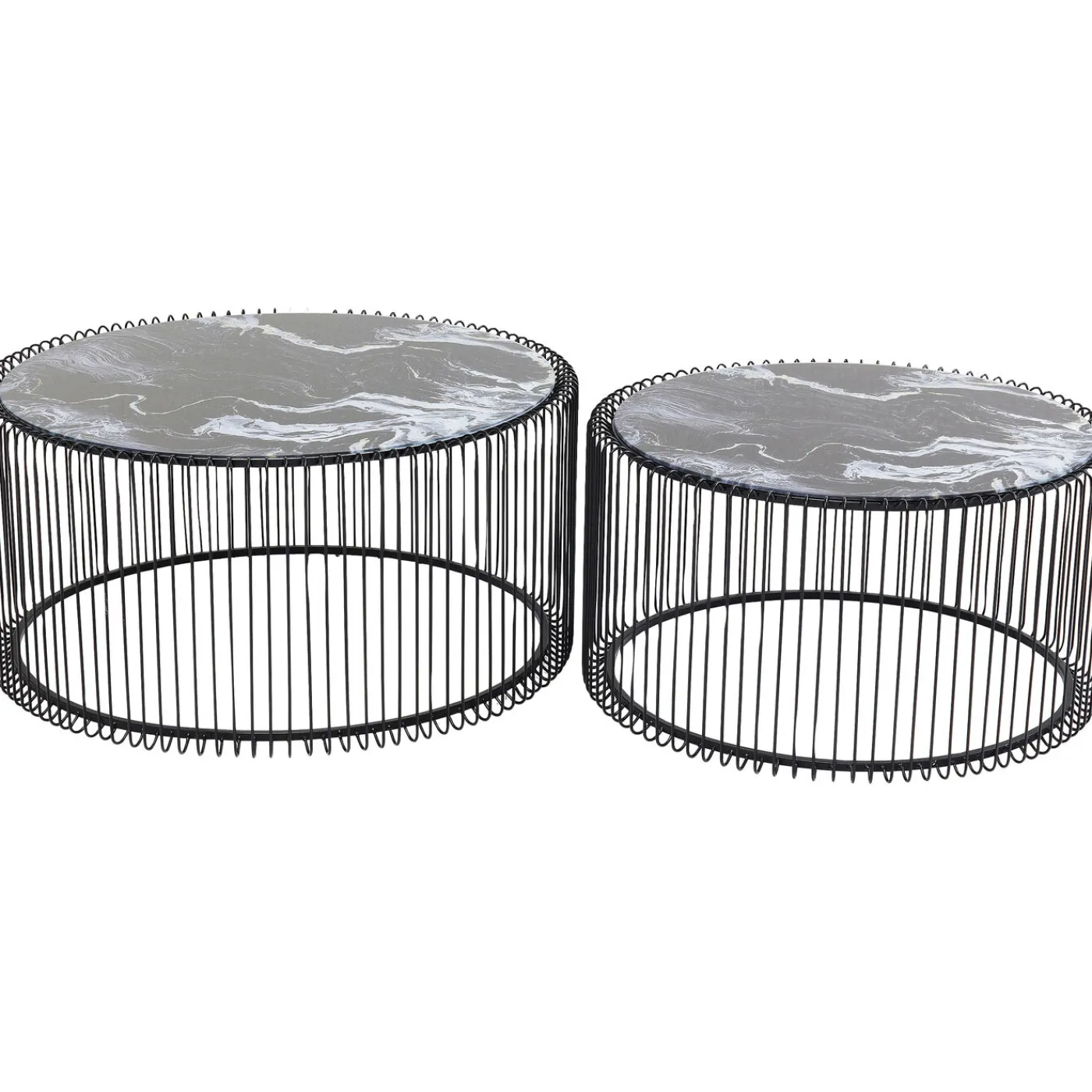 - Filigree Set Of 2 Black Coffee Tables From The Wire Series.