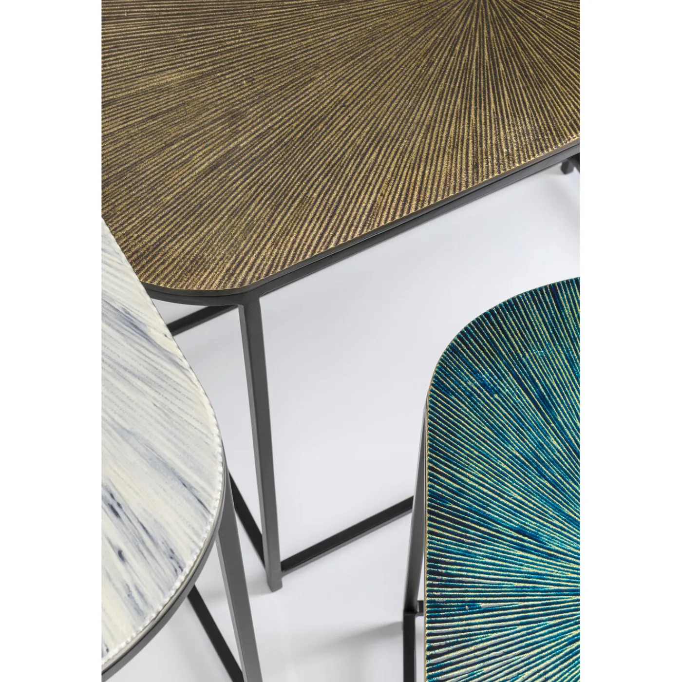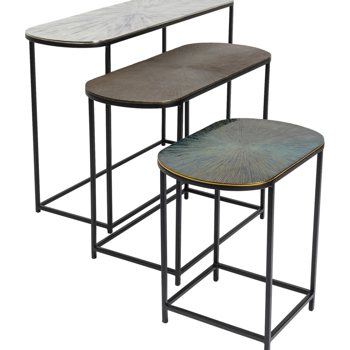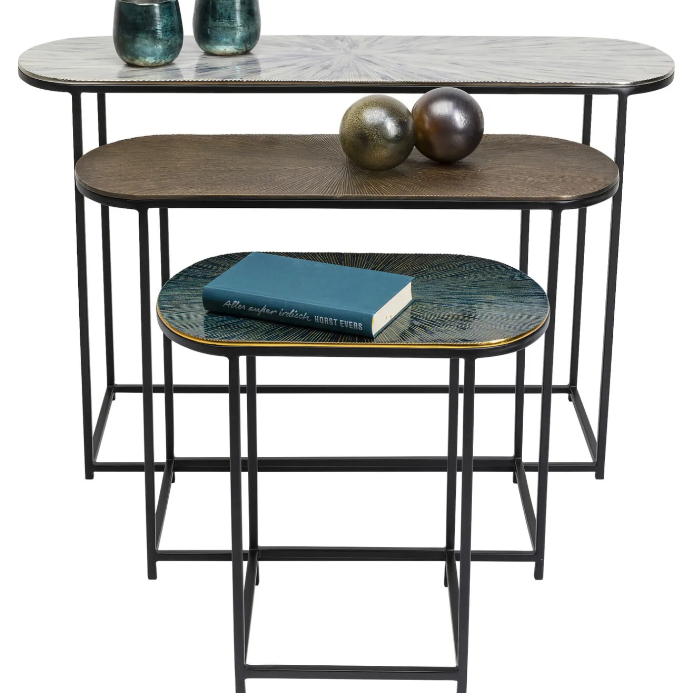- Set Of Three Oval,Black Side Tables With Artistically Coloured Enamel-Look Table Tops