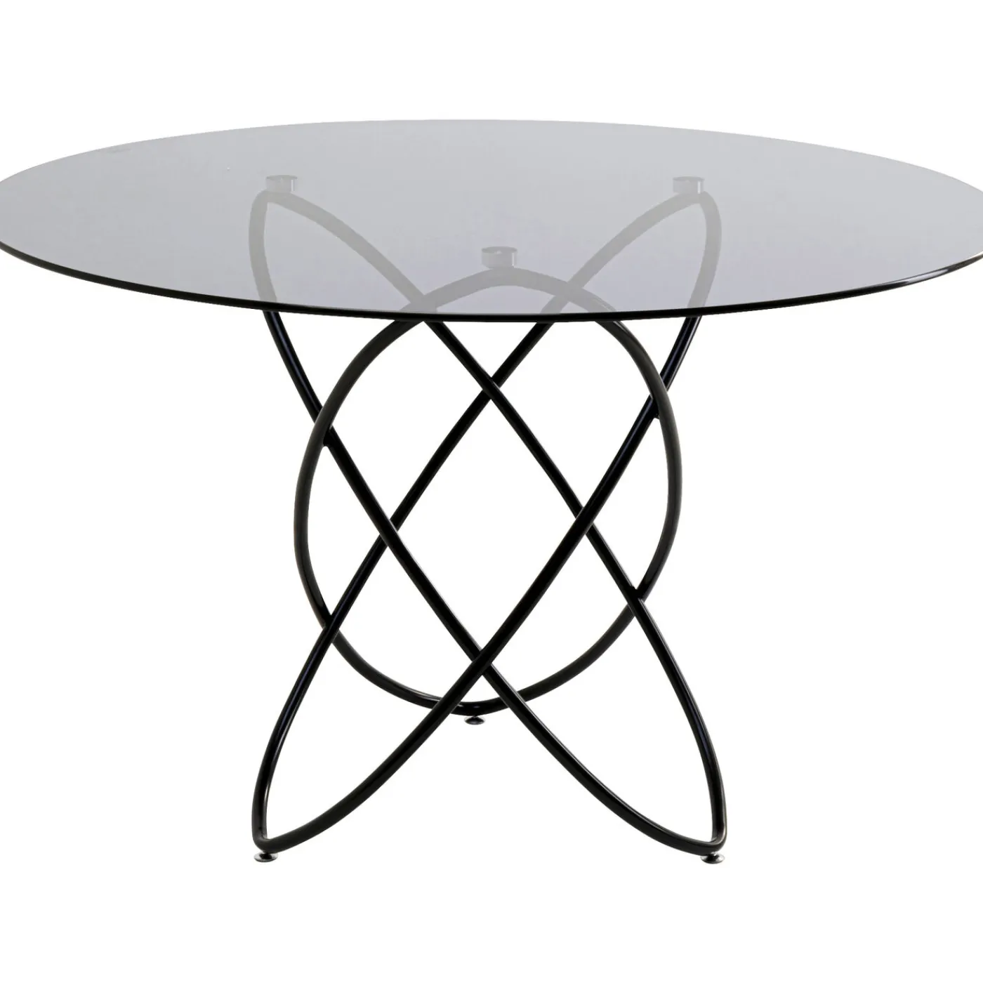 - Glass Table As A Visual Highlight For The Dining Area With A Dark Tinted Esg Glass Top And Black Base