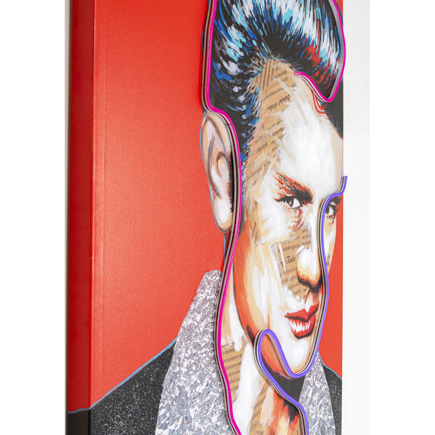 - Coloured Xl Acrylic Painting In Portrait Format With James Dean Motif,Glitter Particles And Neon Lights
