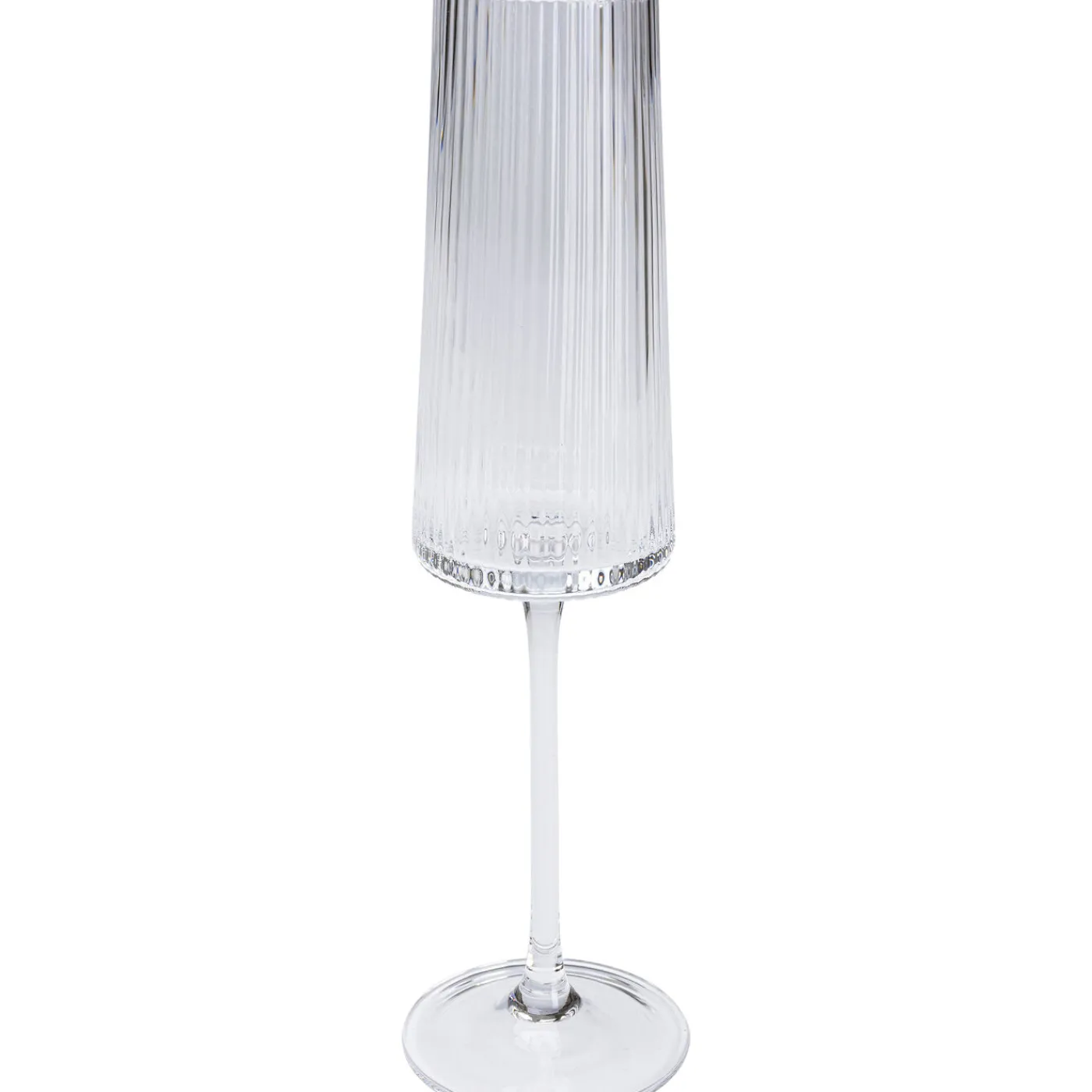 - Flute À Champagne En Verre Transparent Avec Structure Elegante Et Cannelee