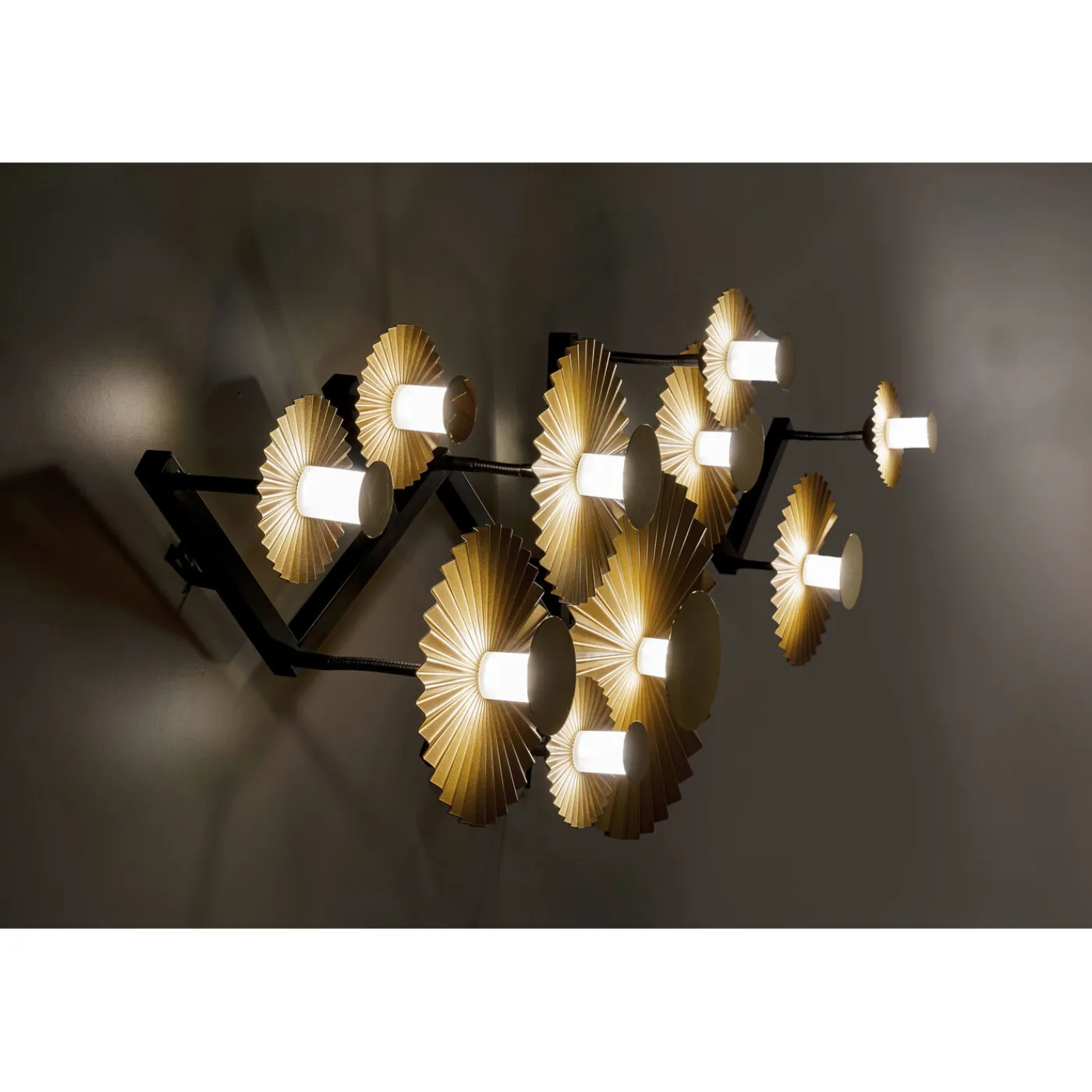 - Ten Round,Pleated Lampshades Made Of Gold-Coloured Lacquered Metal With Milky White Luminous Éléments