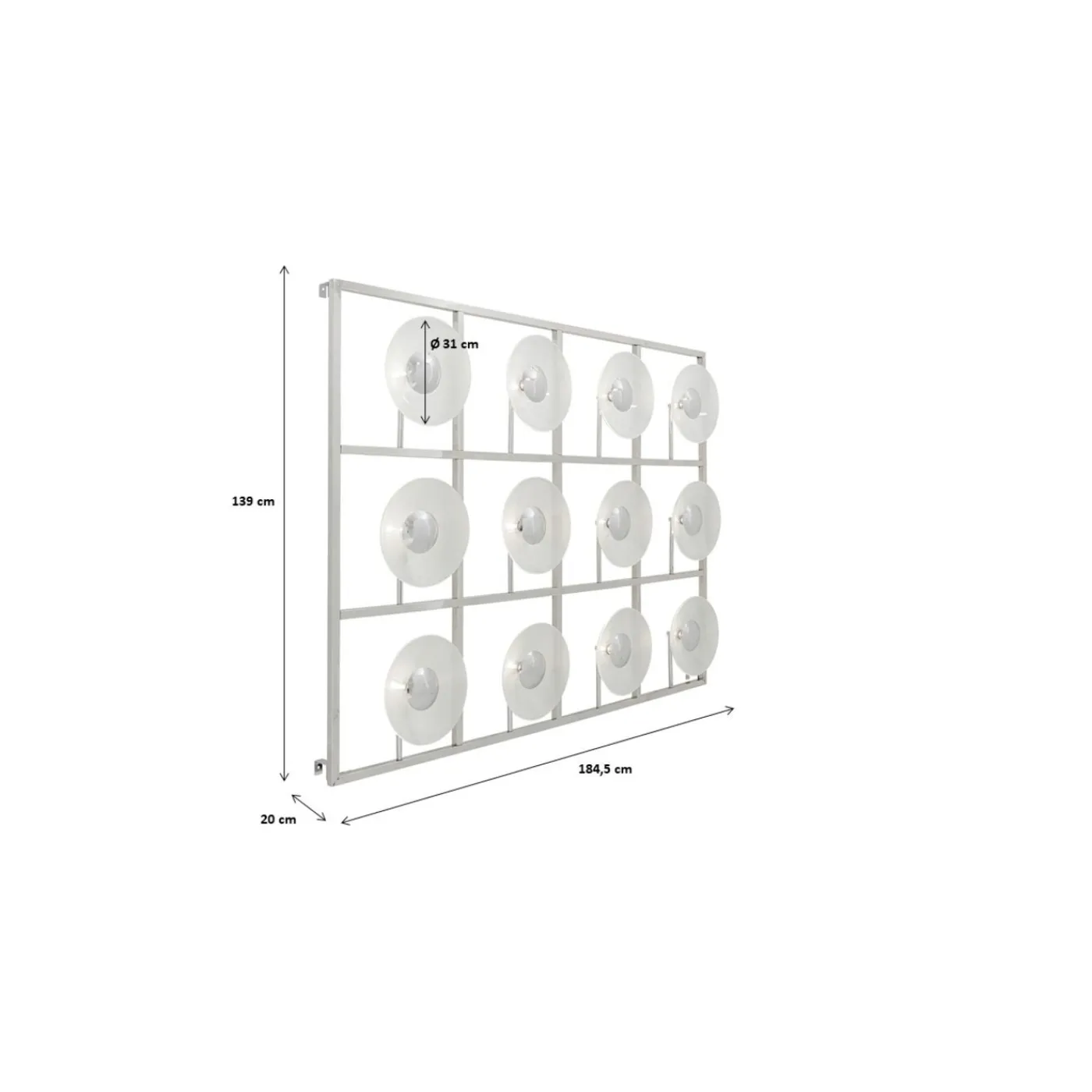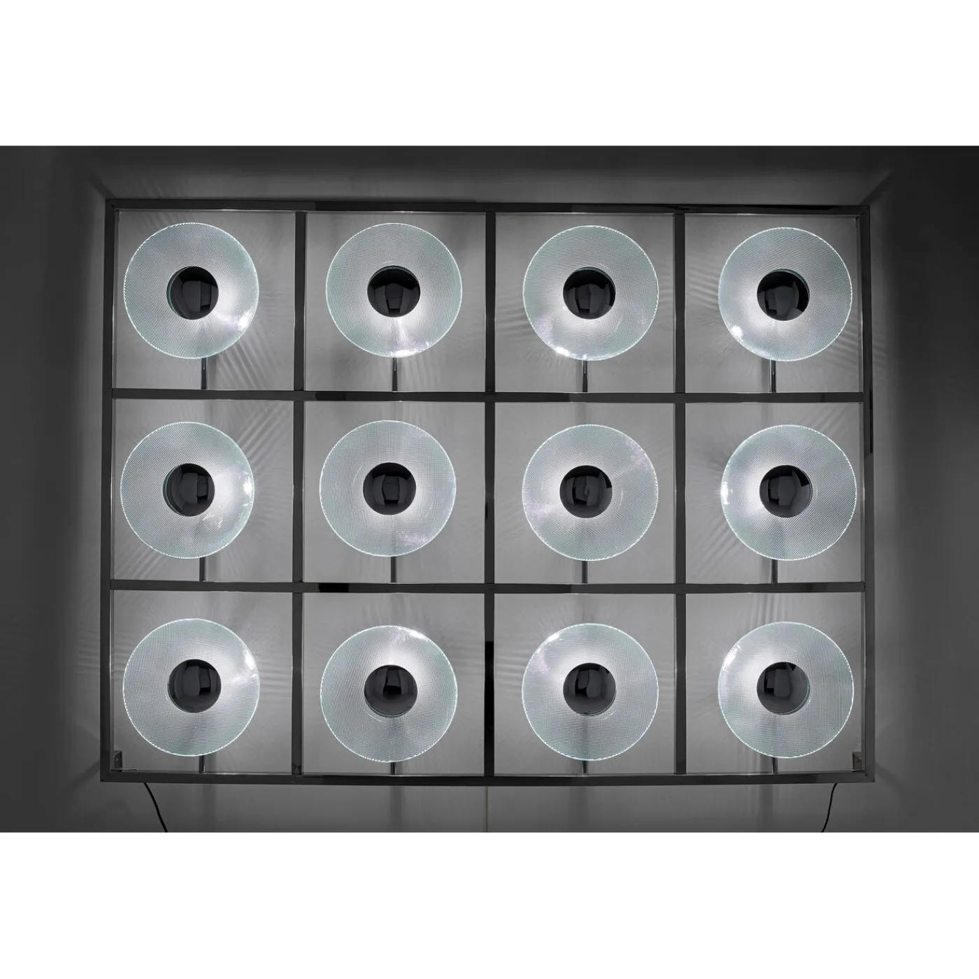 - Large Luminous Object For Mounting On The Wall With A Glossy Chrome-Plated Stainless Steel Frame And 12 Lampshades