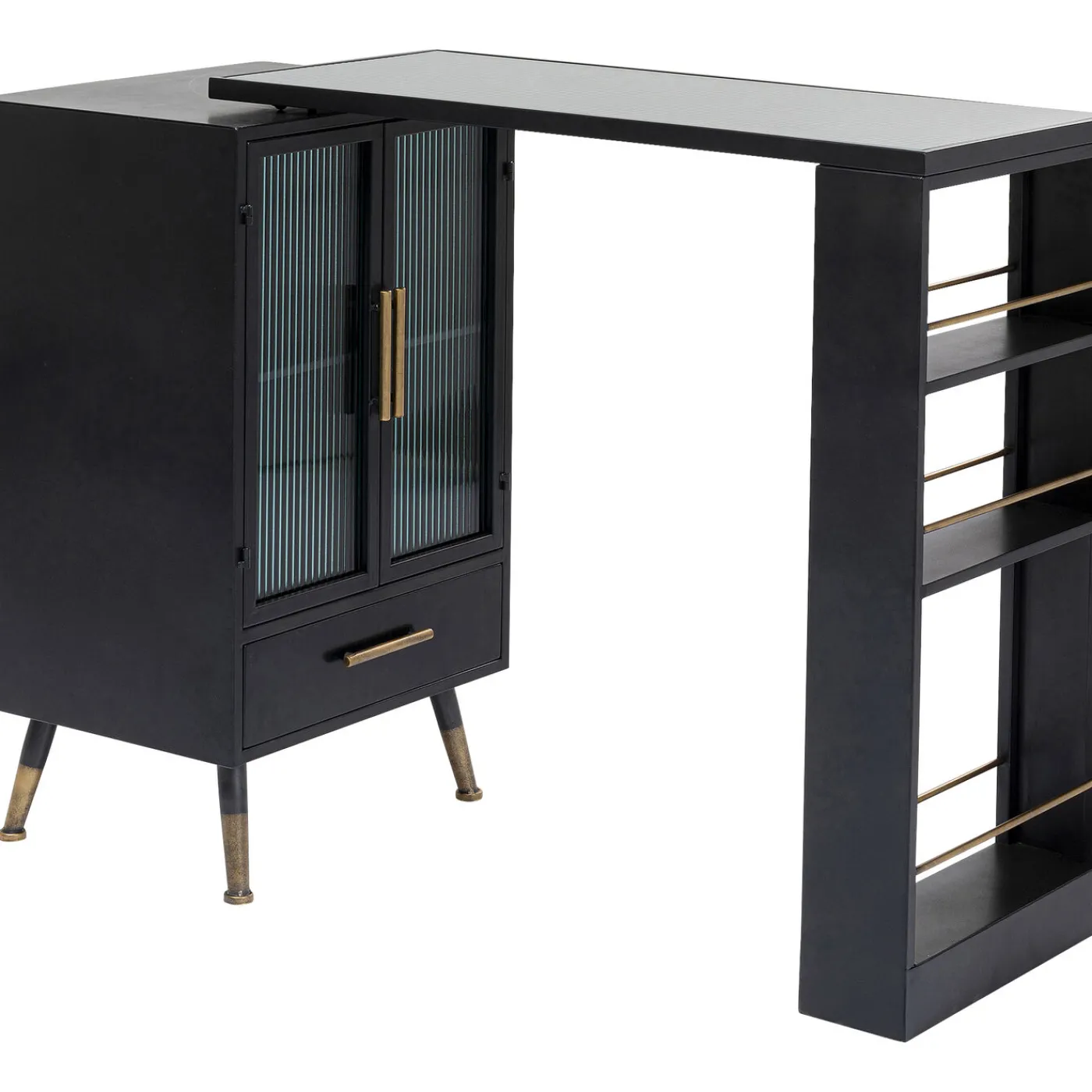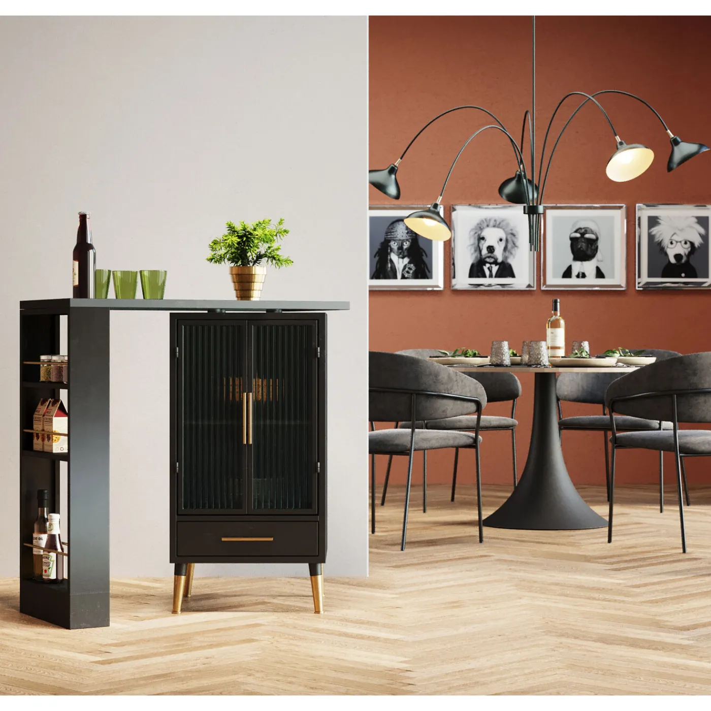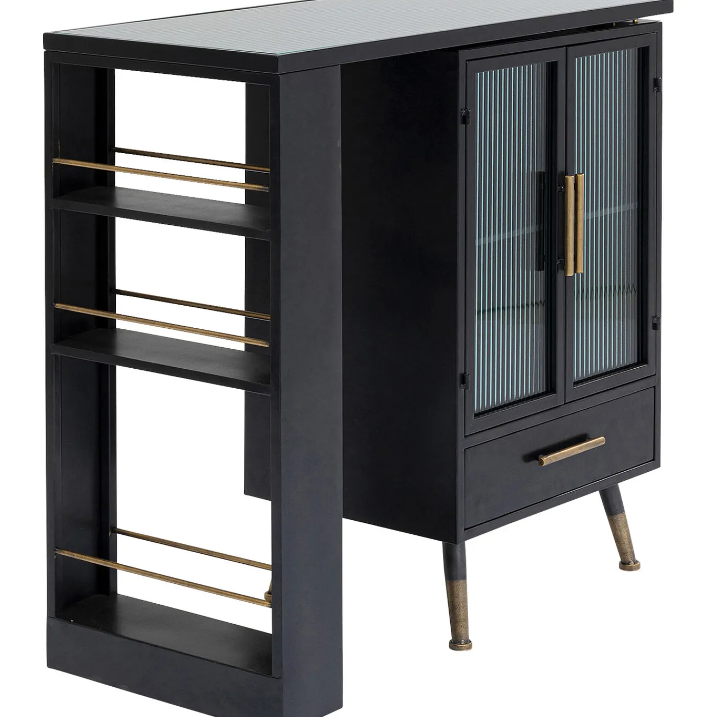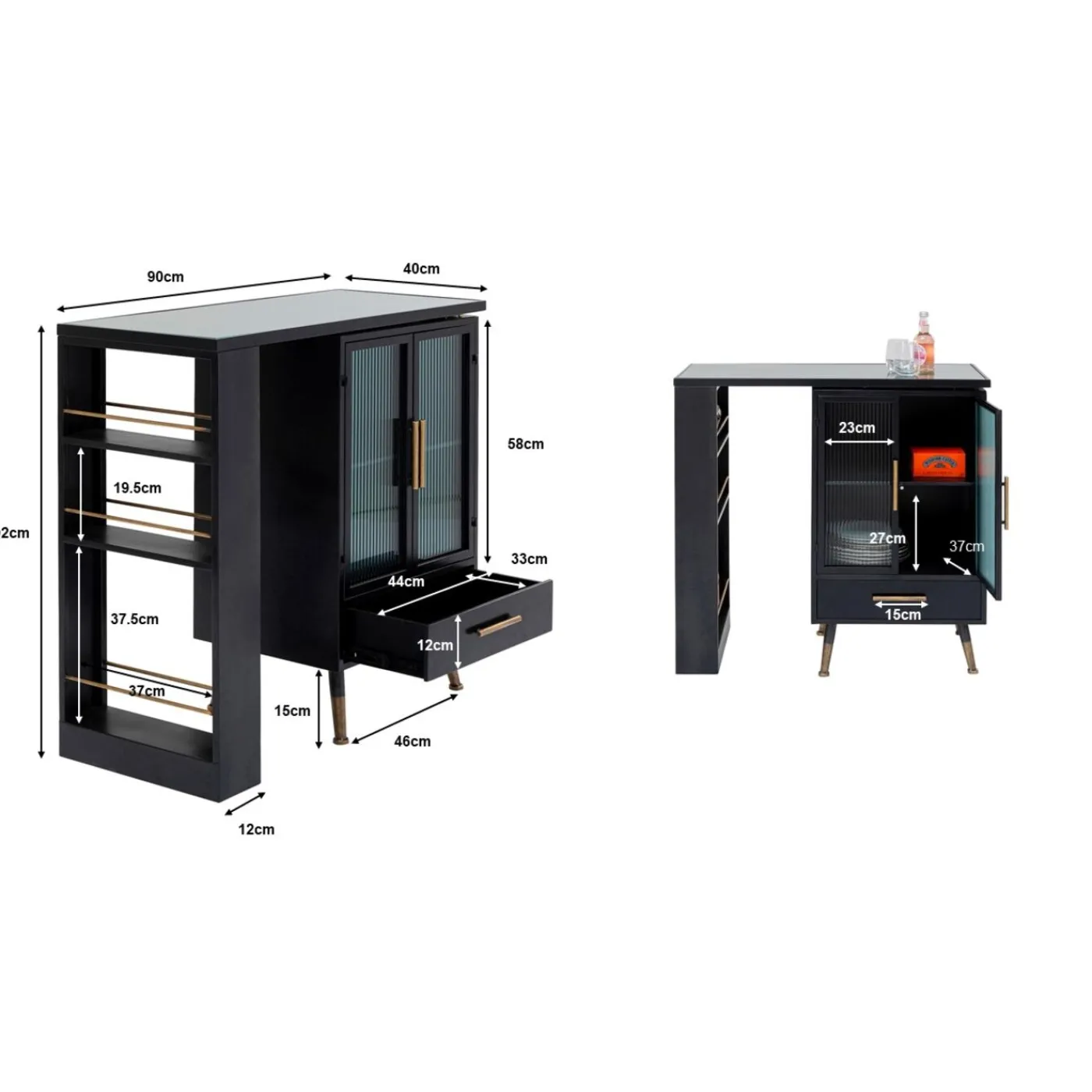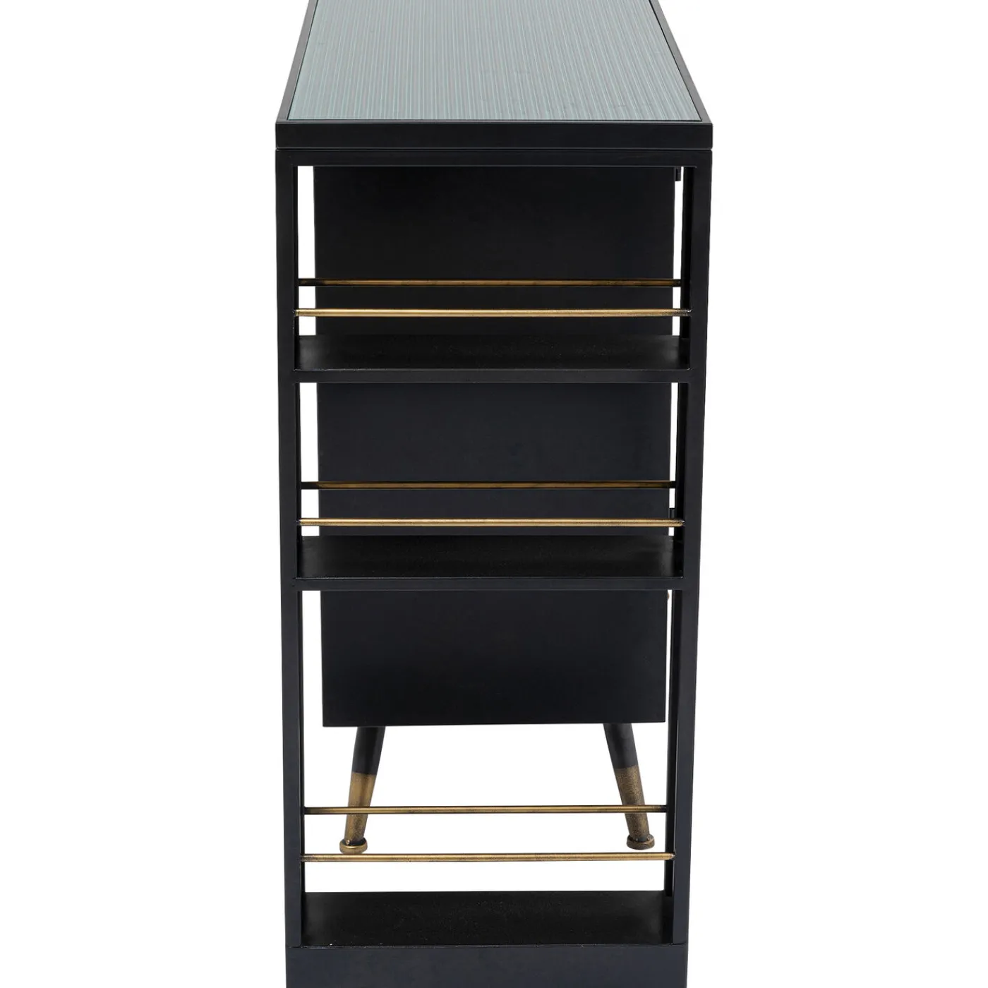 - A Bar For The Home With Sophistication! A Rotatable Base Cabinet With Storage Space And A Drawer,With An Extra Shelf On The Side ,A Cool And Absolutely Timeless Material Mix Of Steel And Ribbed Glass-A Refined Version Of The Industrial Style