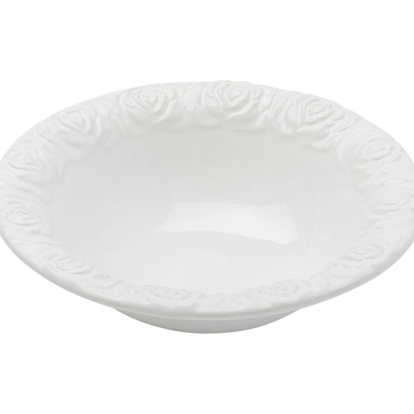 - Handcrafted Bowl In White For Breakfast Cereals,Side Dishes And Desserts,Ceramic With Rose Décoration