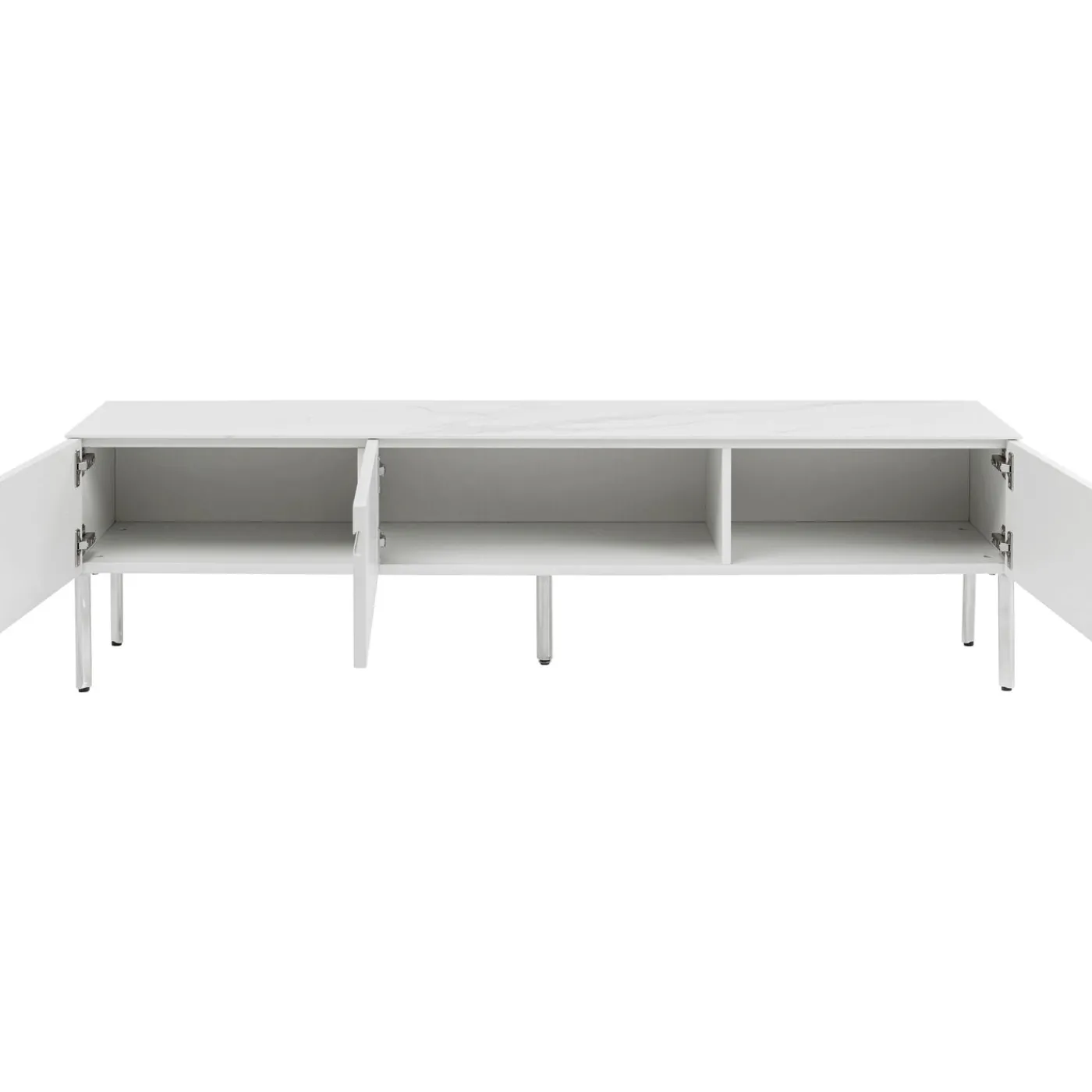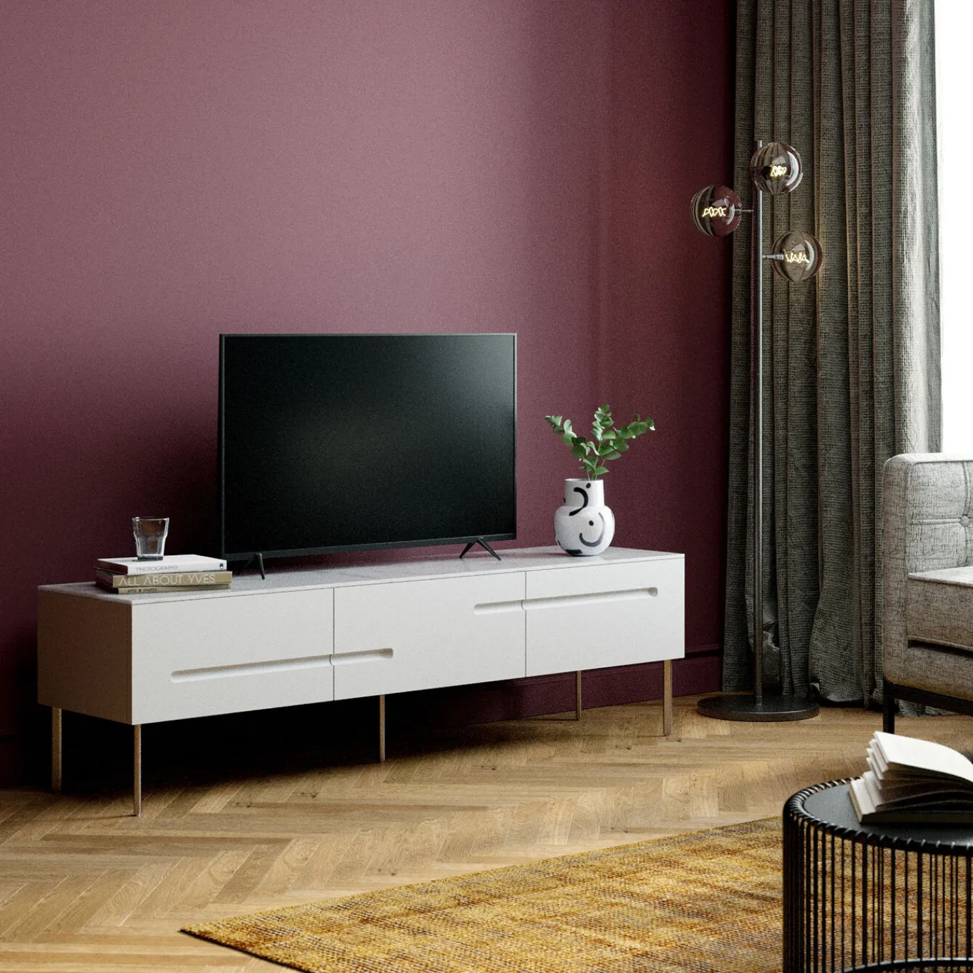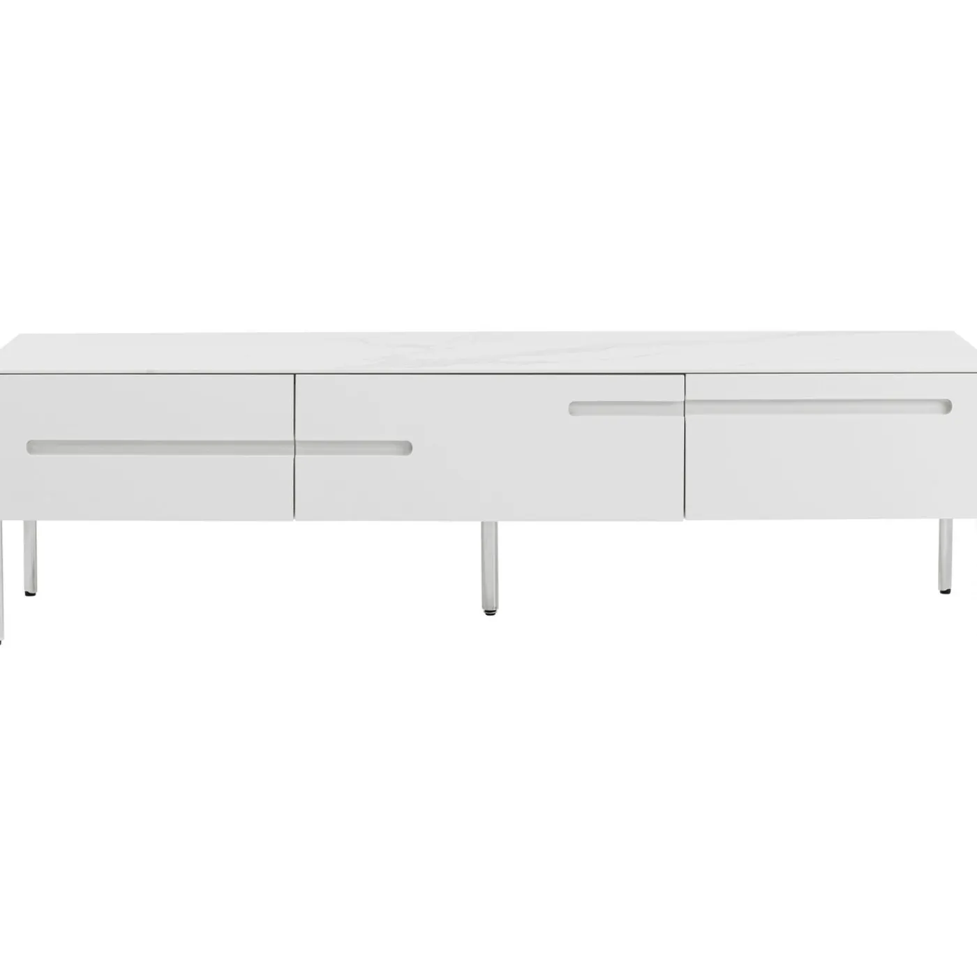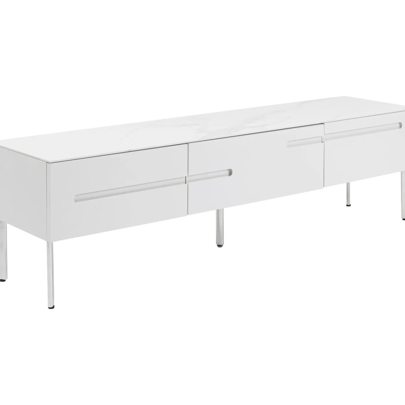 Ce Meuble Tv Du Designer Andreas Weber,Plusieurs Fois Recompense,Seduit Par Son Langage Des Formes Unique. Accentue,Rectiligne Et Pourtant Marquant : Meme Les Poignees Encastrees Avec Leurs Positions Decalees Constituent Un Element D Amenagement Elegant. Le Lowboard En Blanc Et Avec Un Veritable Plateau En Ceramique N Est Pas Seulement Style,Il Est Aussi Fonctionnel : Derriere Trois Portes,Il Y A Beaucoup D Espace De Rangement.
