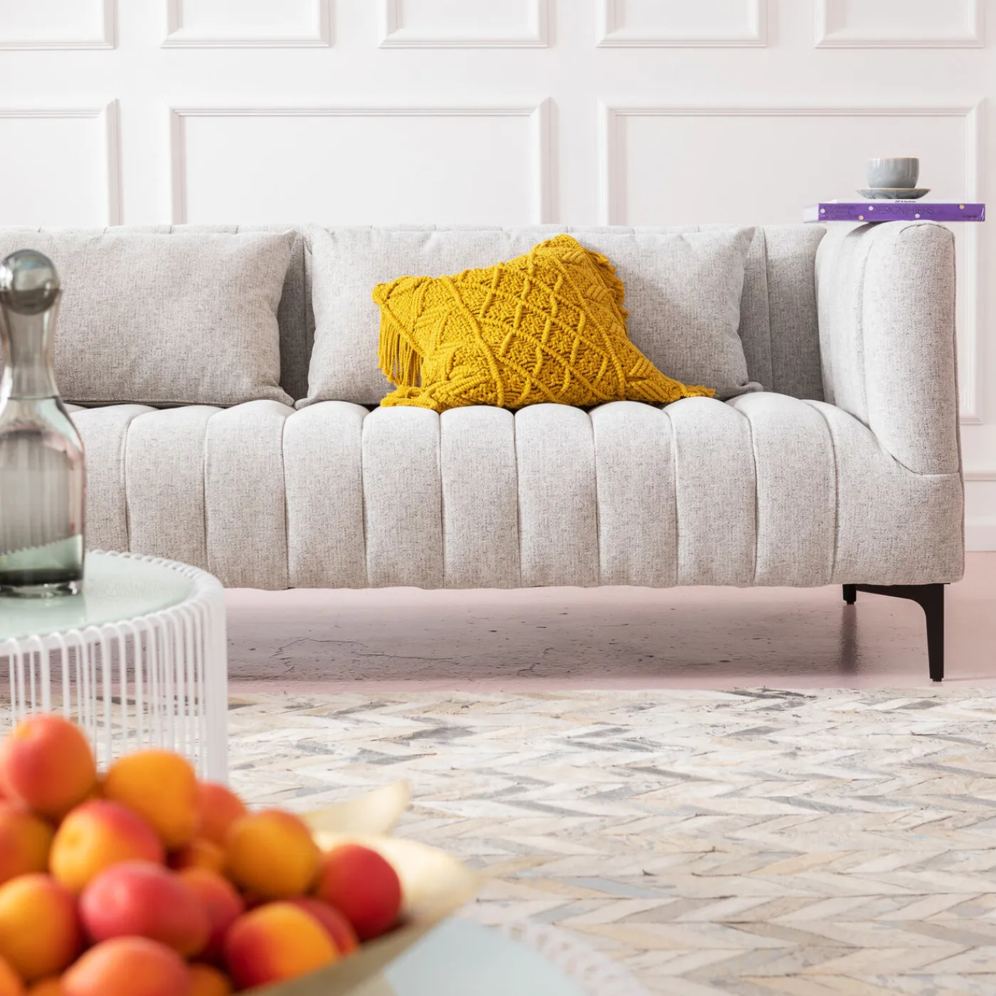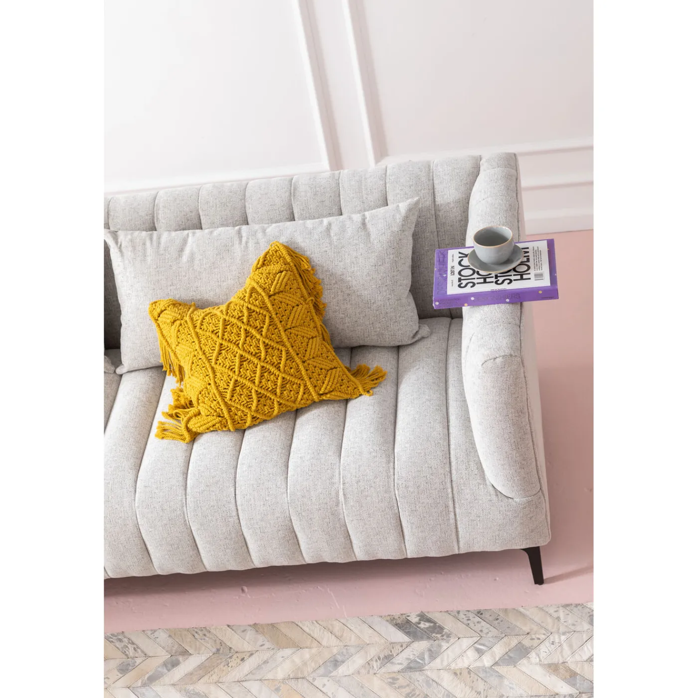- Grey Designer Sofa With An Elegant Retro Touch,Including Two Rectangular Cushions