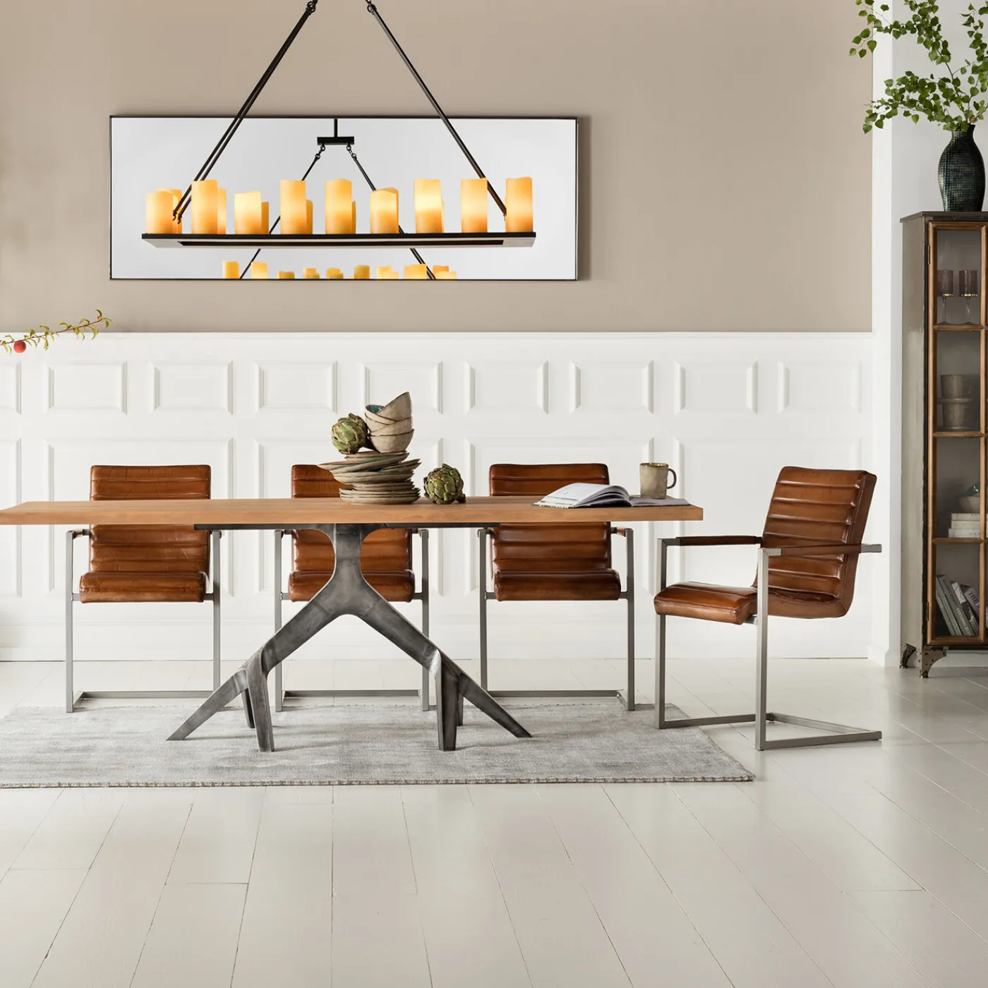 Superbe Chaise Avec Accoudoirs En Cuir De Buffle,Moderne Avec Des Materiaux Simples Et De Qualite.