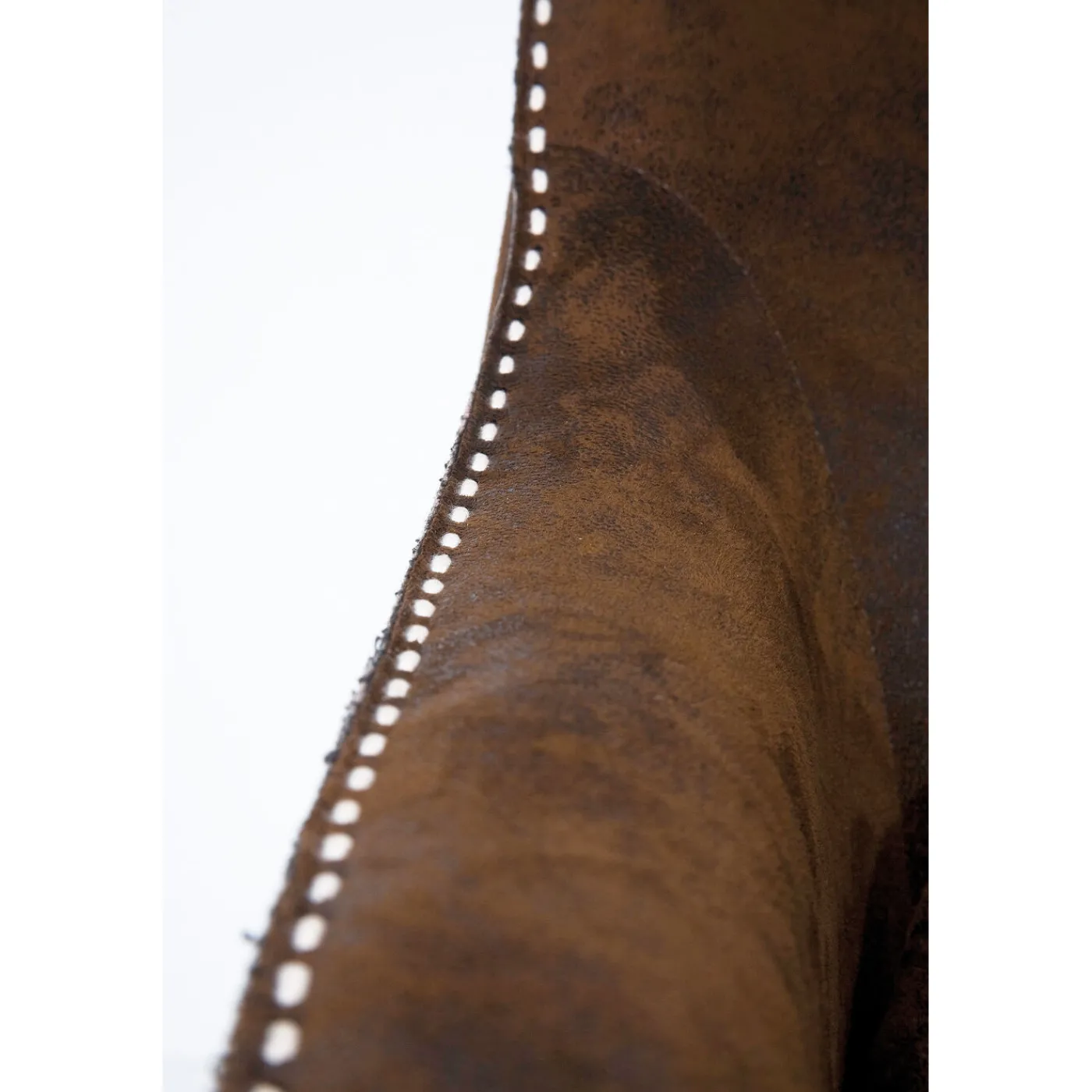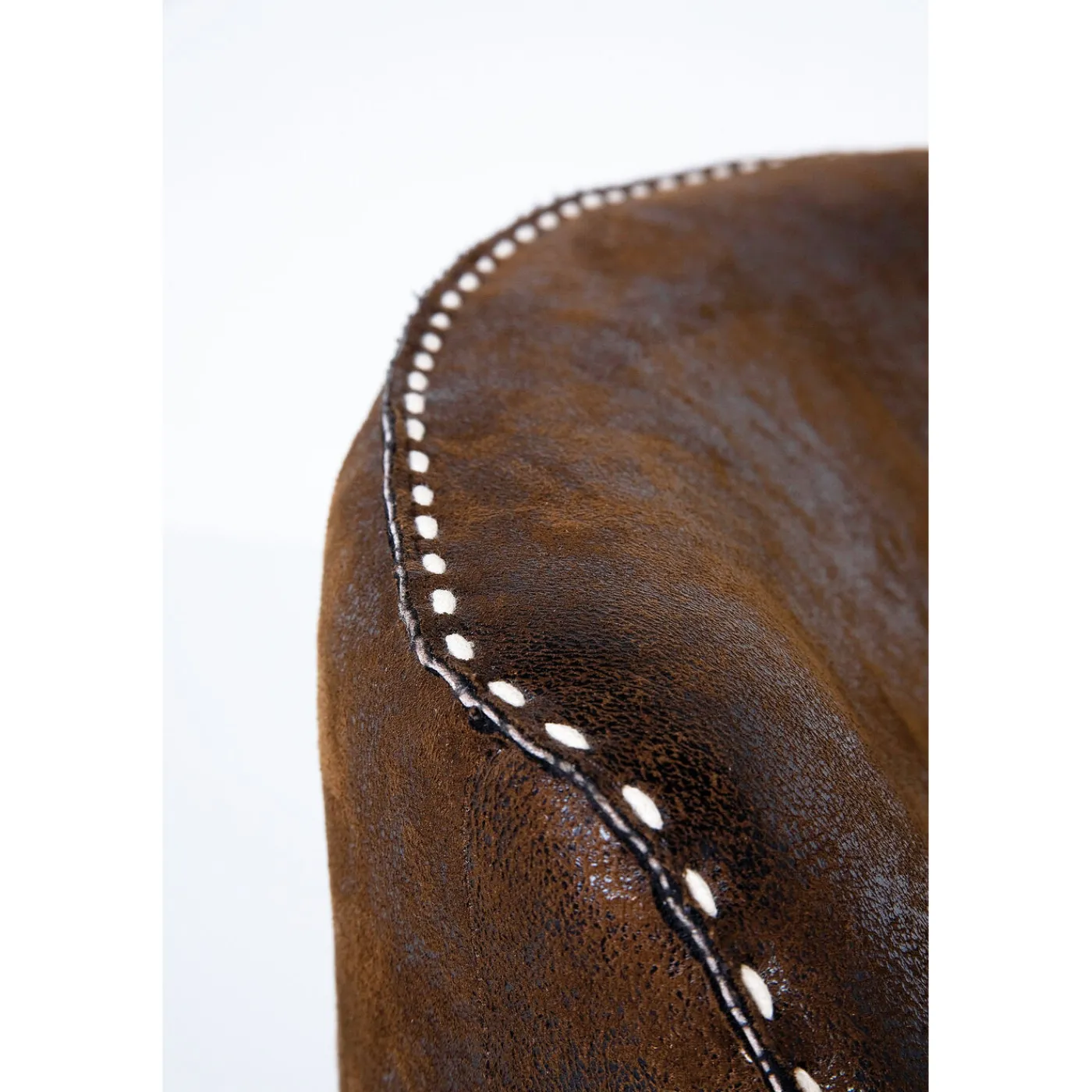 - Upholstered Rocking Chair With Brown Cover In Vintage Leather Look And With Stylish White Décorative Seams