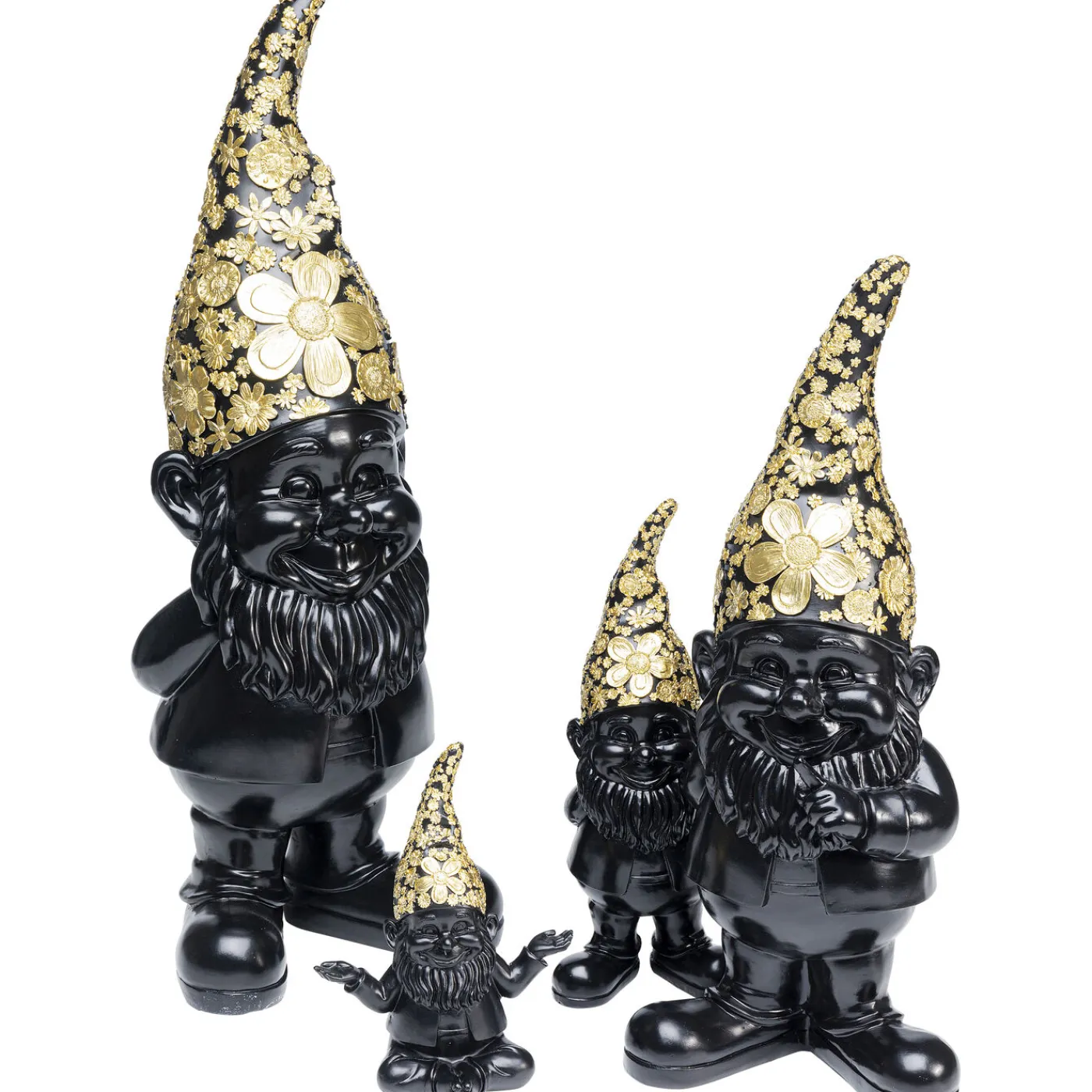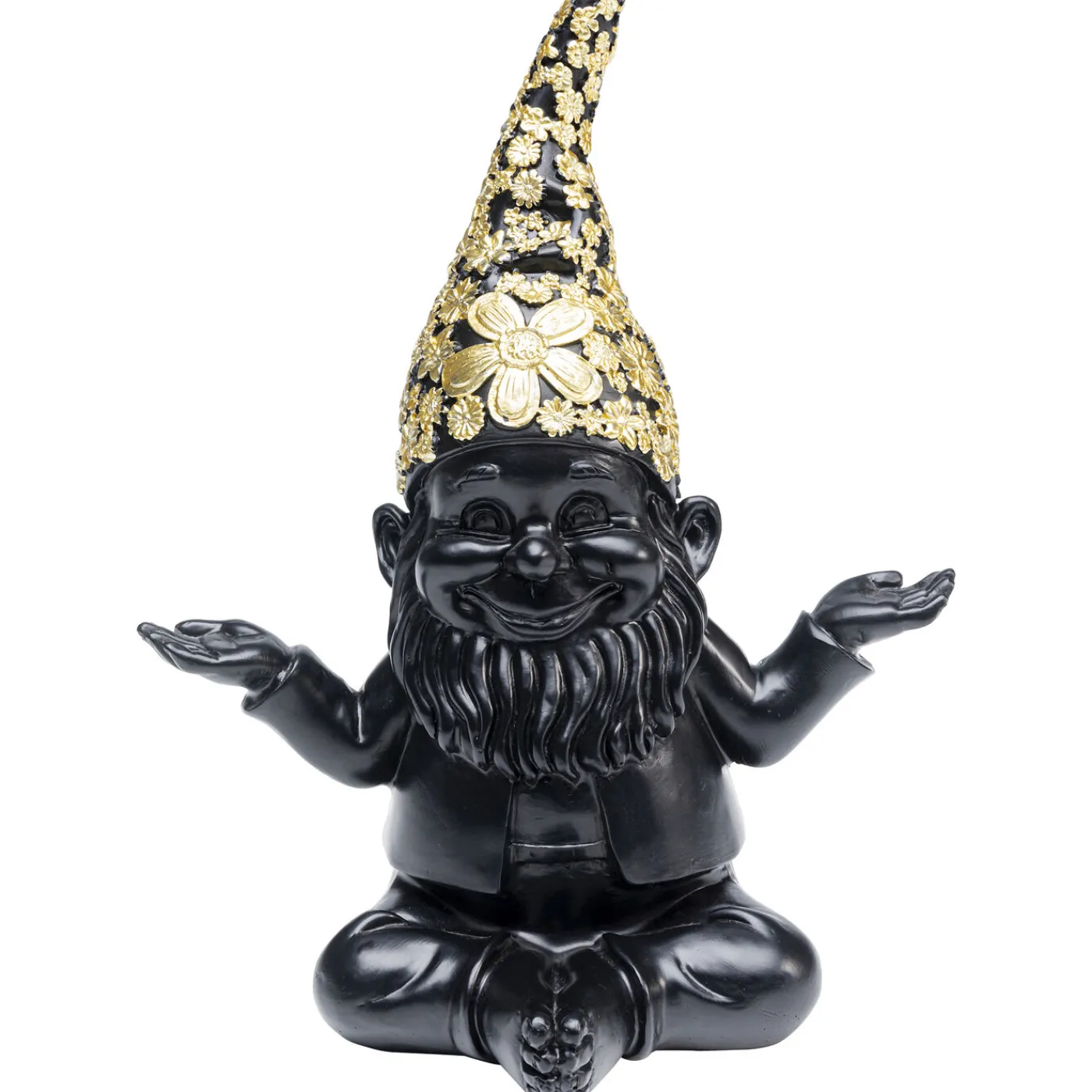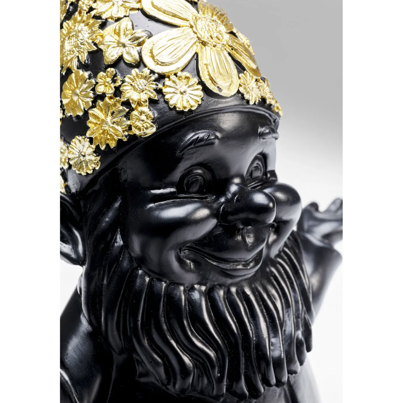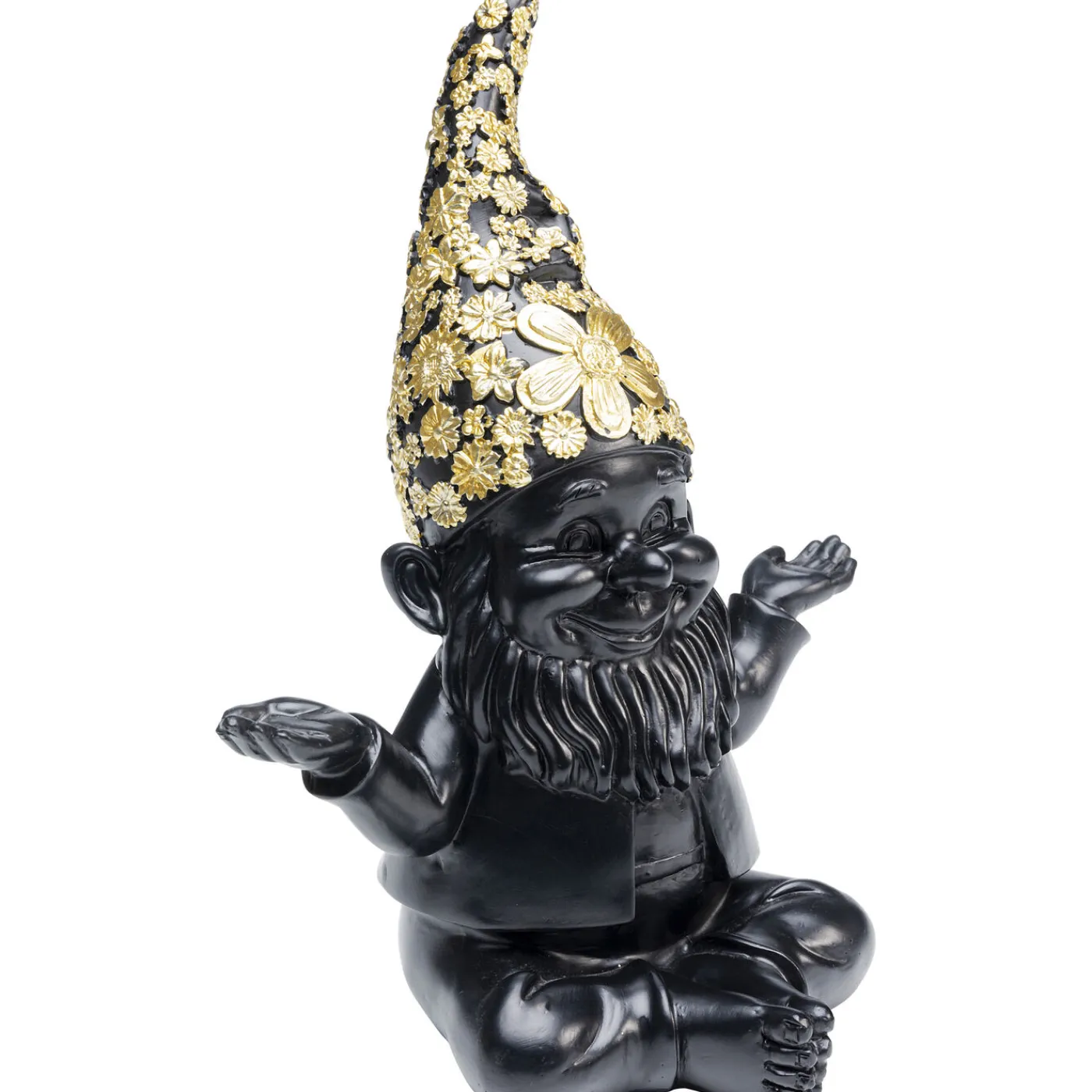 Un Ravissant Nain De Jardin Tout En Noir Avec Des Ornements Floraux Dores Sur Son Bonnet A Pointe : Un Objet De Décoration Aussi Insolite Rend L Amenagement De La Terrasse,Du Balcon Ou Du Rebord De Fenetre Du Salon Encore Plus Amusant.