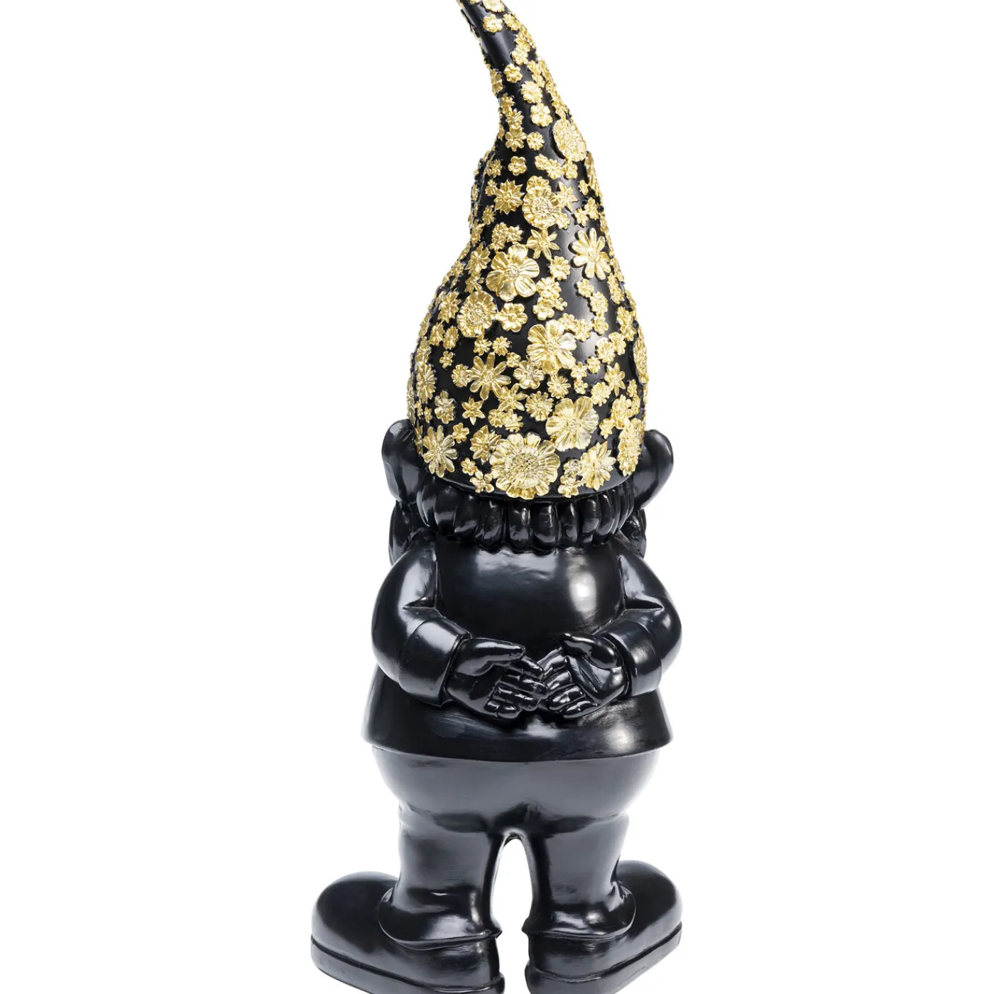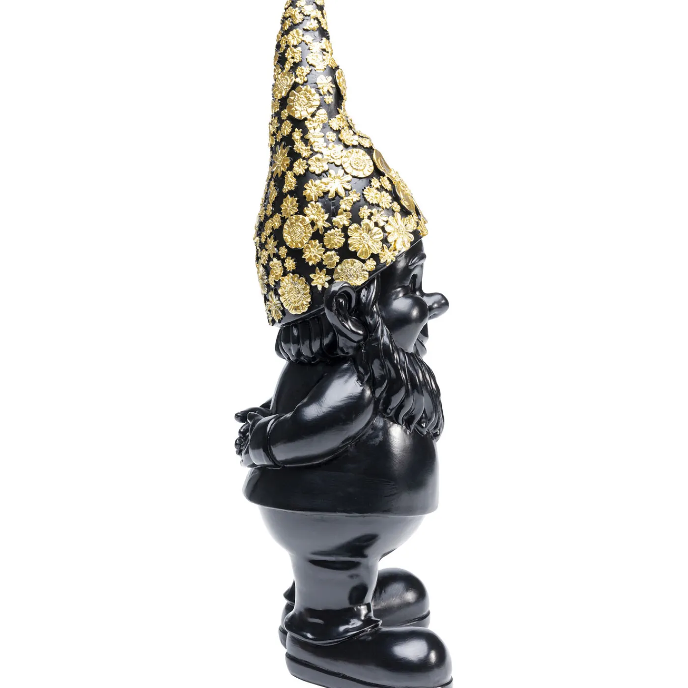 - Fait A La Main : Charmant Nain De Jardin En Noir Avec Casquette A Pointe De Luxe En Or