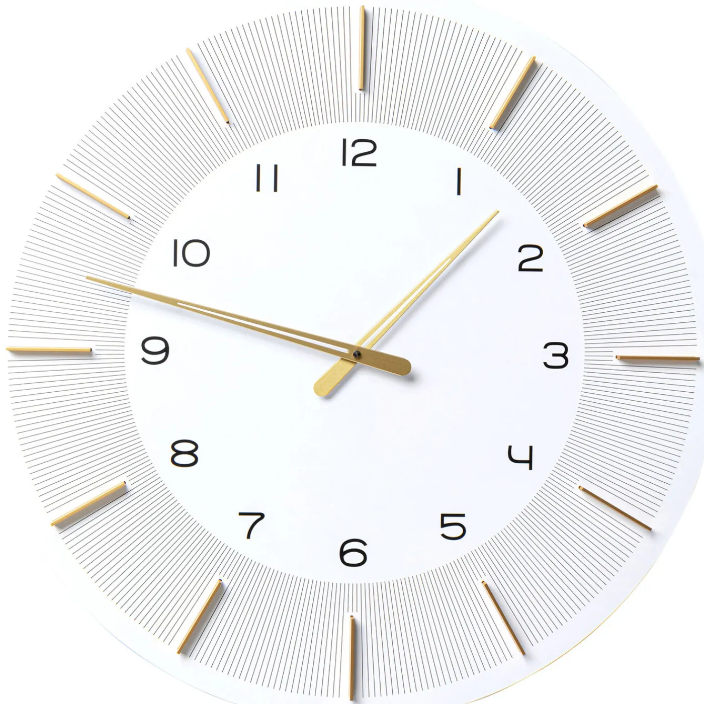 - Horloge Murale Ronde Blanche Avec Éléments De Design En Or