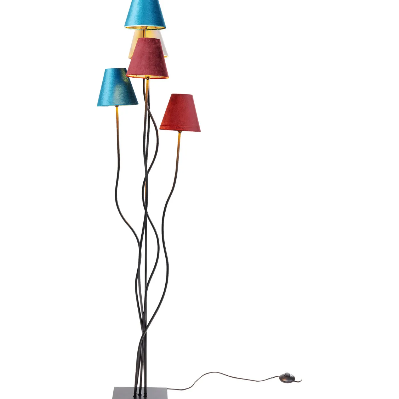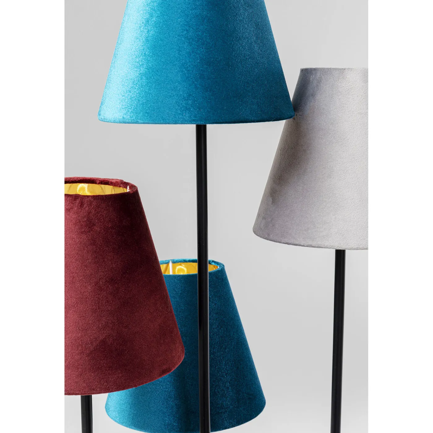 - Unusual Floor Lamp With Five Shades Of Blue,Grey And Red,Each Of Which Comes In A Pretty Velvet Dress