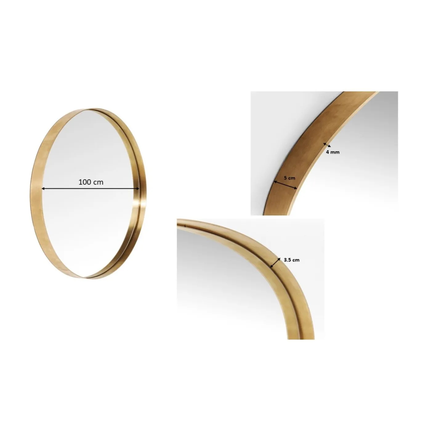 - Magnifique Miroir Rond Aux Contours Reduits Et Au Cadre En Acier Couleur Laiton-Un Classique Revisite