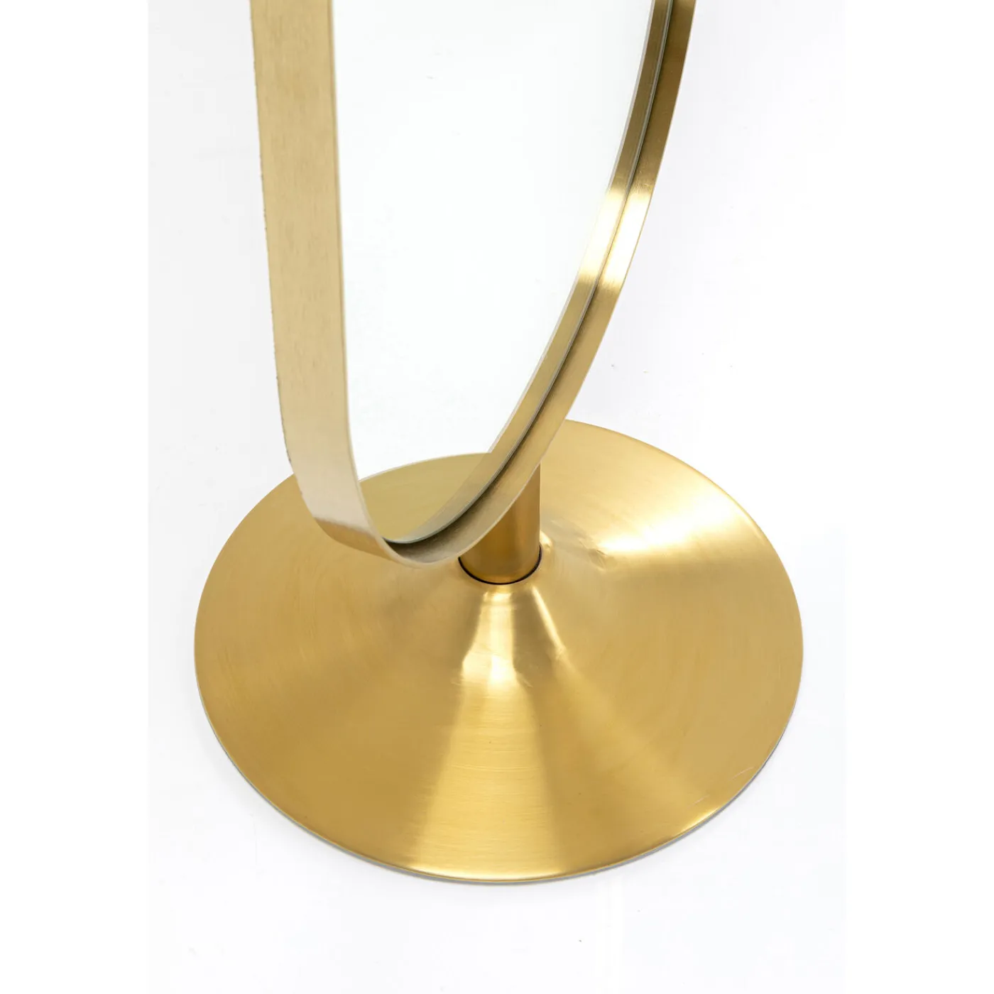 - A Large,Oval Standing Mirror With An Elegant,Brass-Coated Round Base And Frame