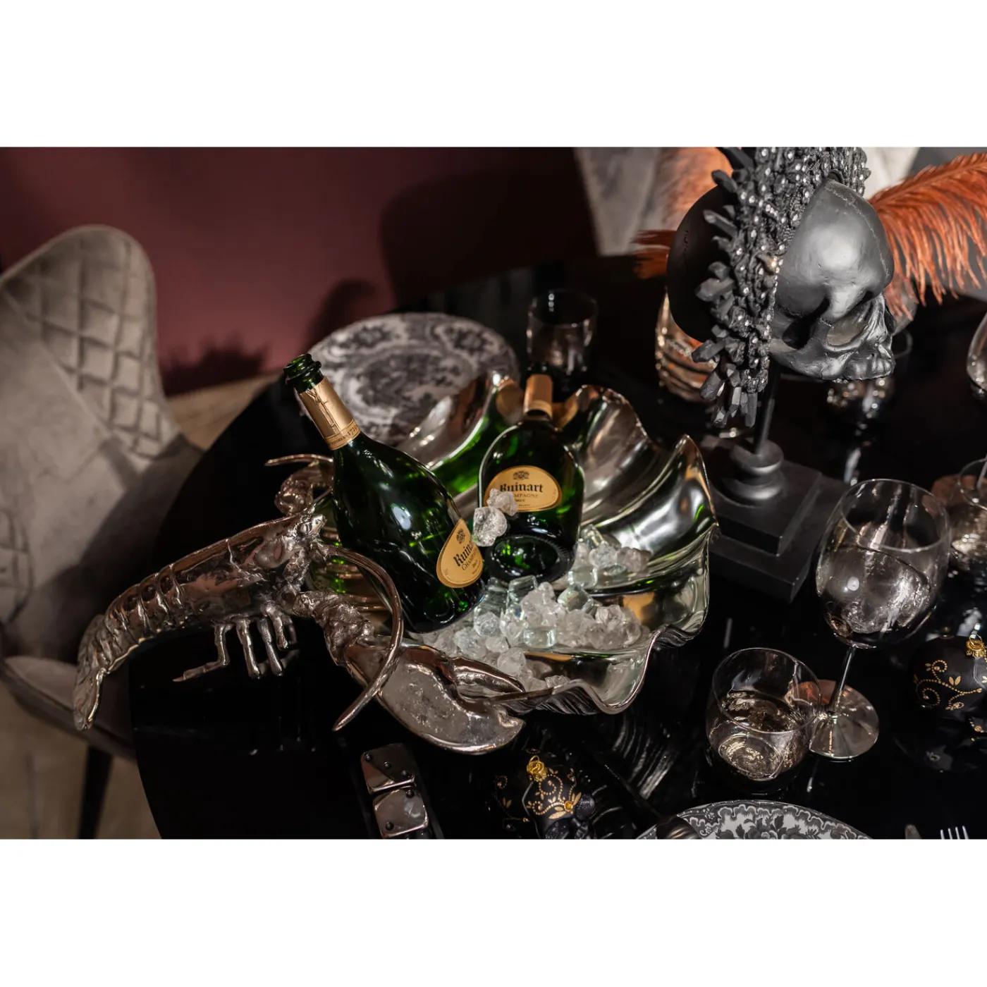 - Modern Glamour: Wine Cooler And Bottle Holder Made Of Shimmering Silver Metal In The Shape Of A Lobster