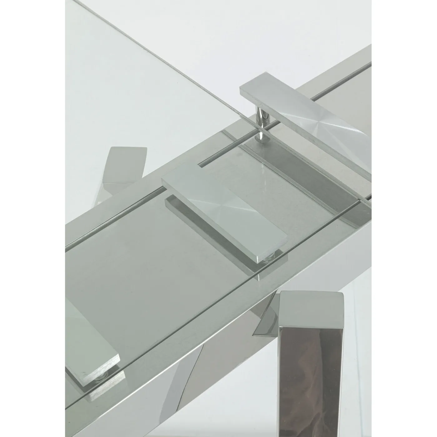 Informations Sur Les Produits: Plateau De Table: Verre Verre Trempe Esg Clair,Pied: Acier Affine Poli,10 Mm Epaisseur Plateau,50 Kg Capacite De Charge Maximale,Partiellement Demonte,160-240 Cm Extensible