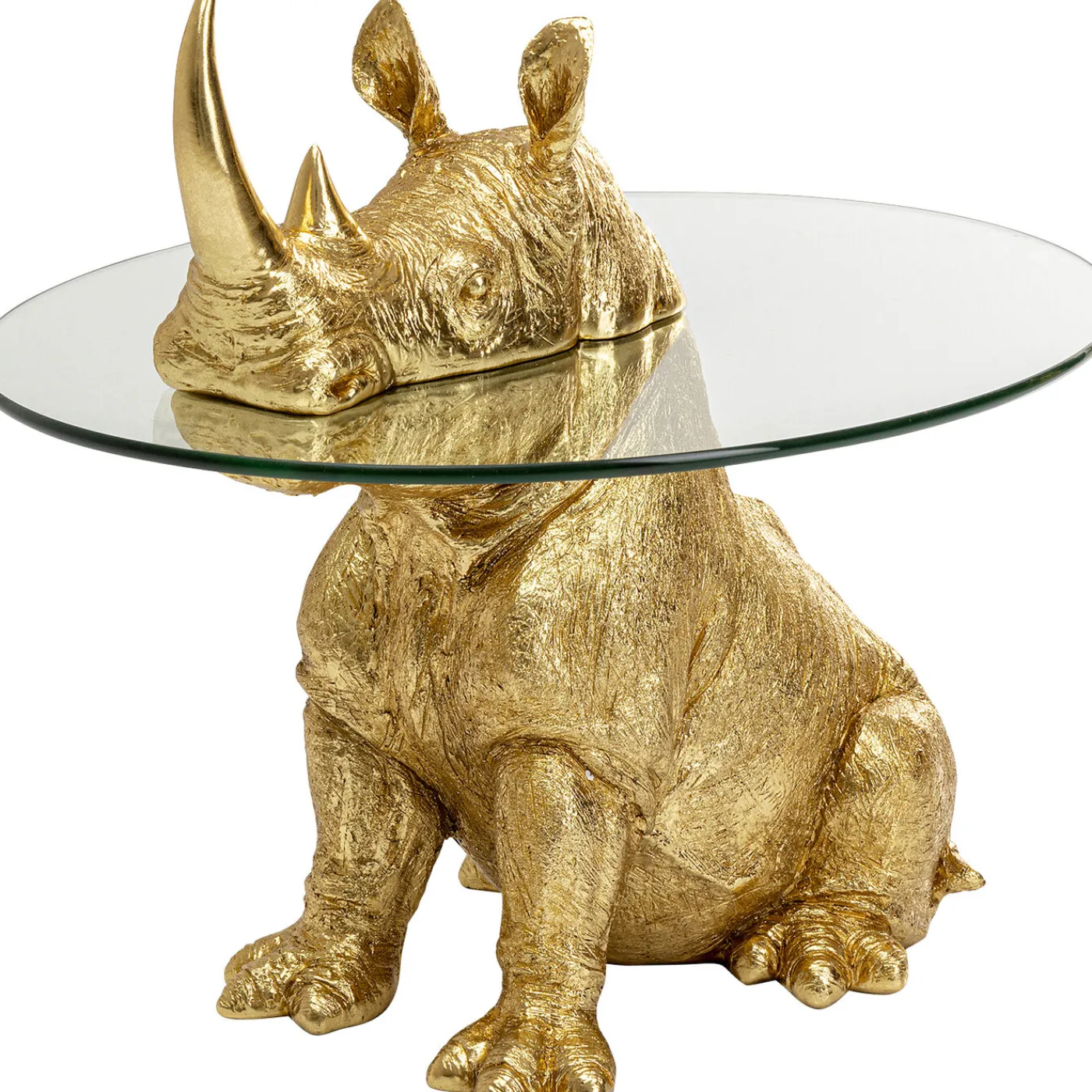 La Table Basse Sitting Rhino Ravit Non Seulement Les Amoureux Des Animaux,Mais Aussi Les Amateurs D Ameublement Qui Sont Constamment A La Recherche D Accessoires D Interieur Excentriques : La Figure Du Rhinoceros Allie Glamour Et Humour,Car La Figure Doree De L Animal Se Prolonge A Travers Le Plateau De La Table En Verre De Securite-Comme Si Le Rhinoceros Sortait De L Eau. Avec Son Style Flamboyant,Cette Table Basse Deviendra Rapidement Le Centre D Attention De Votre Salon.