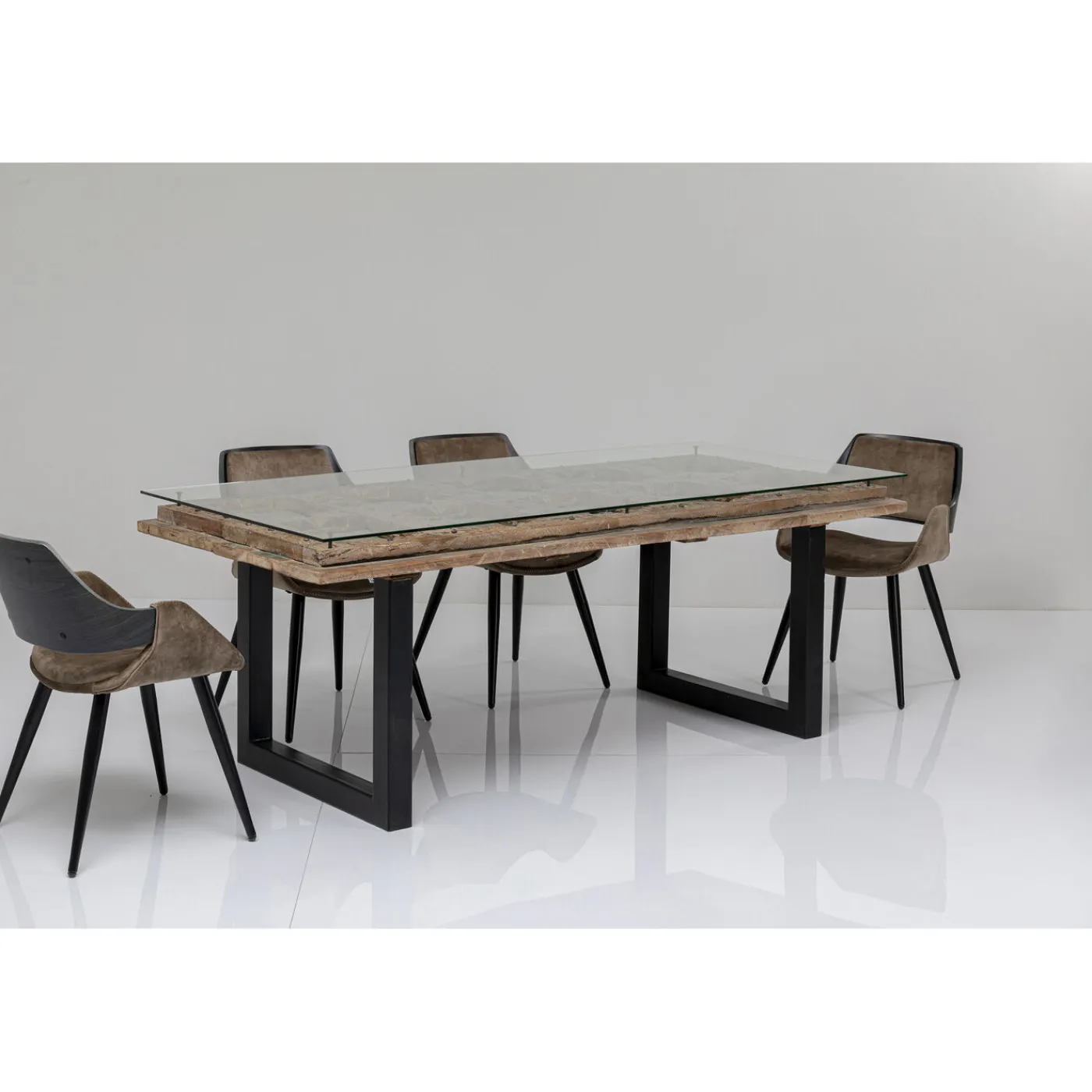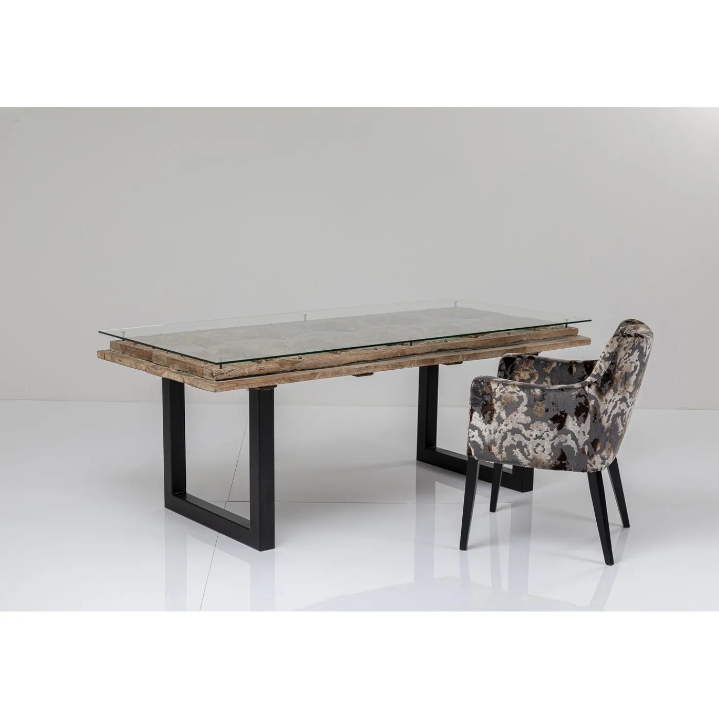 Informations Sur Les Produits: Plateau De Table: Verre Verre Trempe Esg Clair,Bois Massif Bois Recycle Mangue Cire,Pied: Acier Laque,100 Kg Capacite De Charge Maximale,Fabrique A La Main,Demonte,Soin Et Nettoyage: Ref. 25002 Nettoyant Meubles