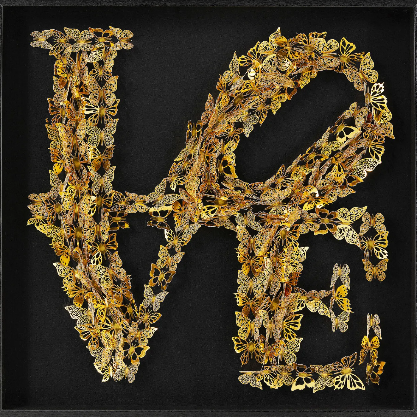 Le Tableau Objet Love Butterfly Est Une Décoration Murale Exceptionnelle Qui Se Distingue Par Son Ecriture Plastique Love Composee De Papillons Jaune Et Or. Le Tableau Mural Est Realise A La Main,Avec Une Toile De Lin. La Facade En Verre La Protege De La Poussiere Et Des Dommages. Chaque Piece Est Unique Et Mesure 90X90X6 Cm (H/L/P) Et A Une Forme Carree. Ce Tableau Mural Egayera Vos Murs Et Creera Une Atmosphere Particuliere Dans Vos Pieces.