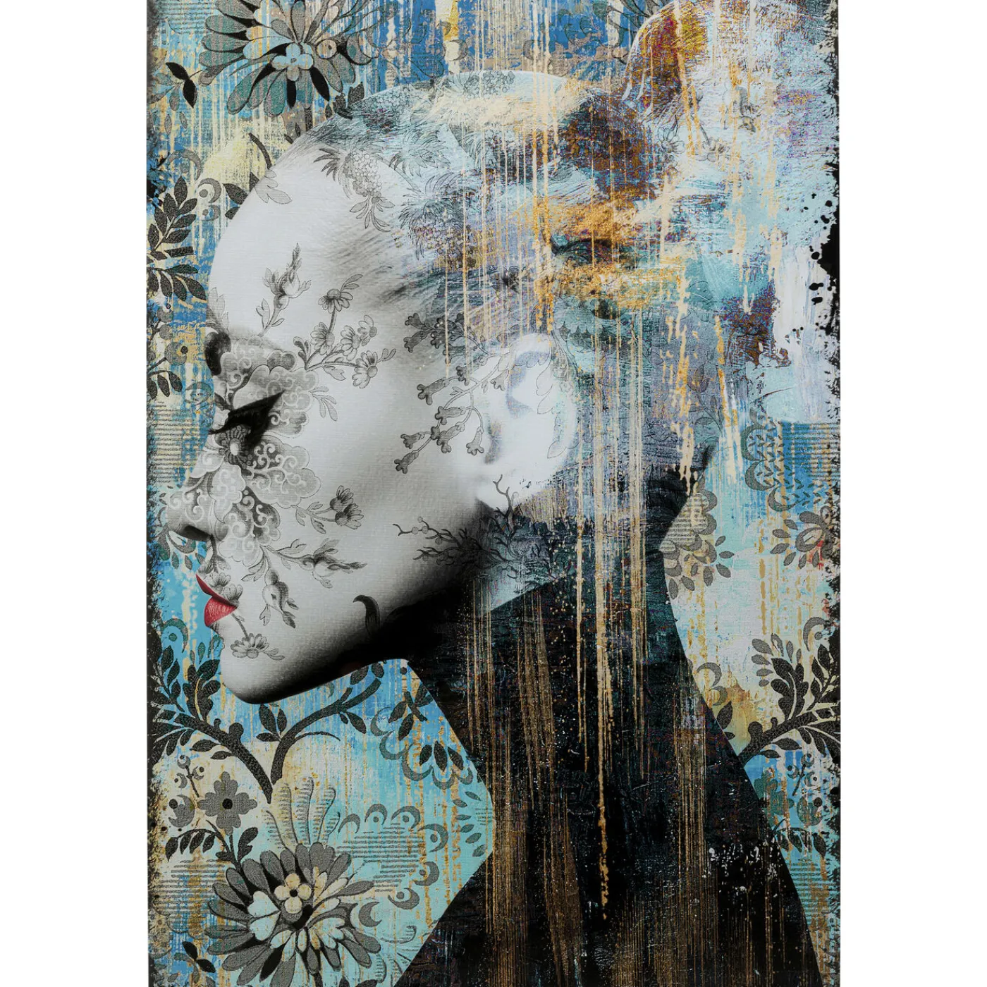 - Photographie Sans Cadre,Creativement Detournee,Avec Portrait Et Motifs Graphiques Principalement En Bleu Et Noir